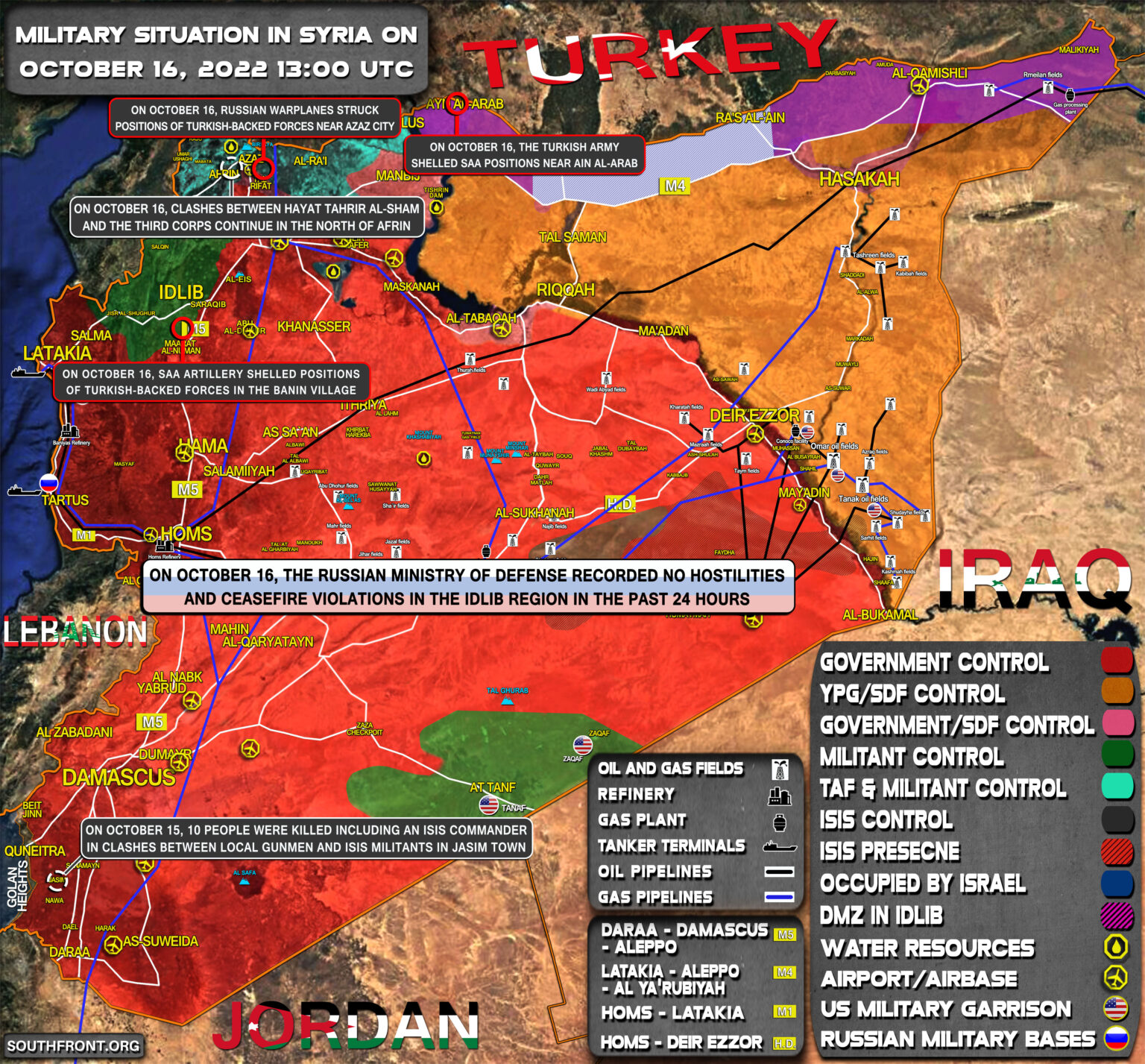 Vojenská situácia v Sýrii 15. októbra 2022 (aktualizácia mapy)
