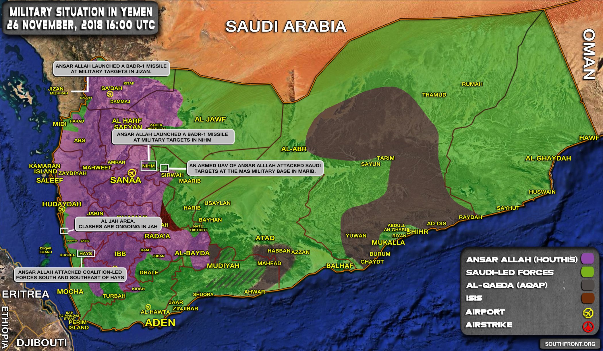 Vojenská situace v Jemenu dne 13. listopadu 2018