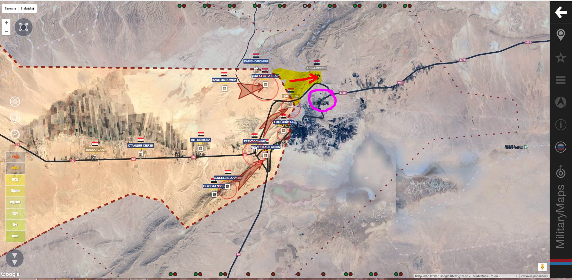 Útok SAA+ na križovatku "trojuholník" pri Palmýre, za leteckej podpory.