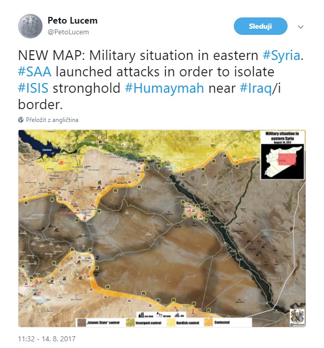 SAA+ stihla oslobodiť ďalšie územie:IgorT píše: ↑12 srp 2017, 13:54Damašek, Jobar. SAA+ sa podarilo prelomiť líniu rebelov a obsadiť strategickú križovatku Al-Manasher Roundabout