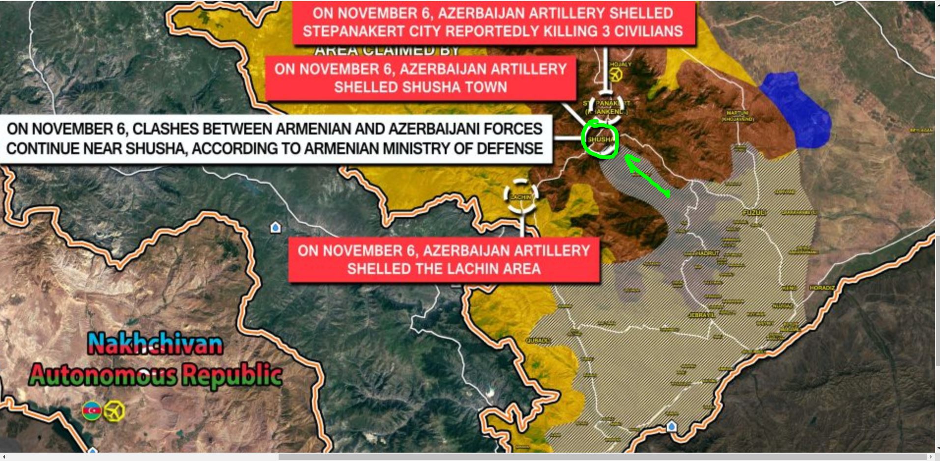 6. novembra ostreľovalo azerbajdžanské delostrelectvo mesto Šuša;