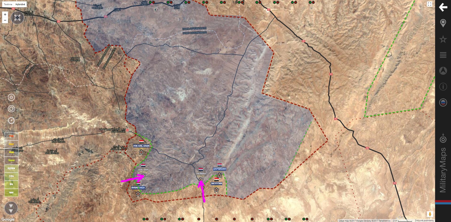 V. Homs. SAA+ pokračuje v postupe v kotli Aqraybat. Získala Unq al-Hawa, Zaghroutiyah, Drawayshiyah, Lawaybdah, Ghaniman, and Umm Sajj