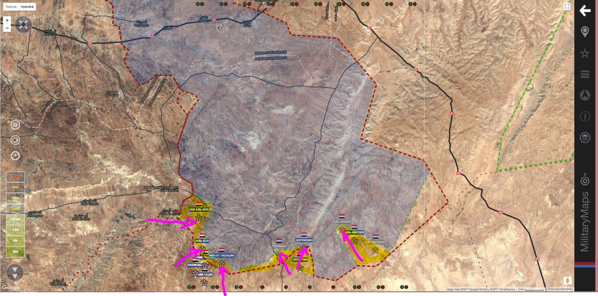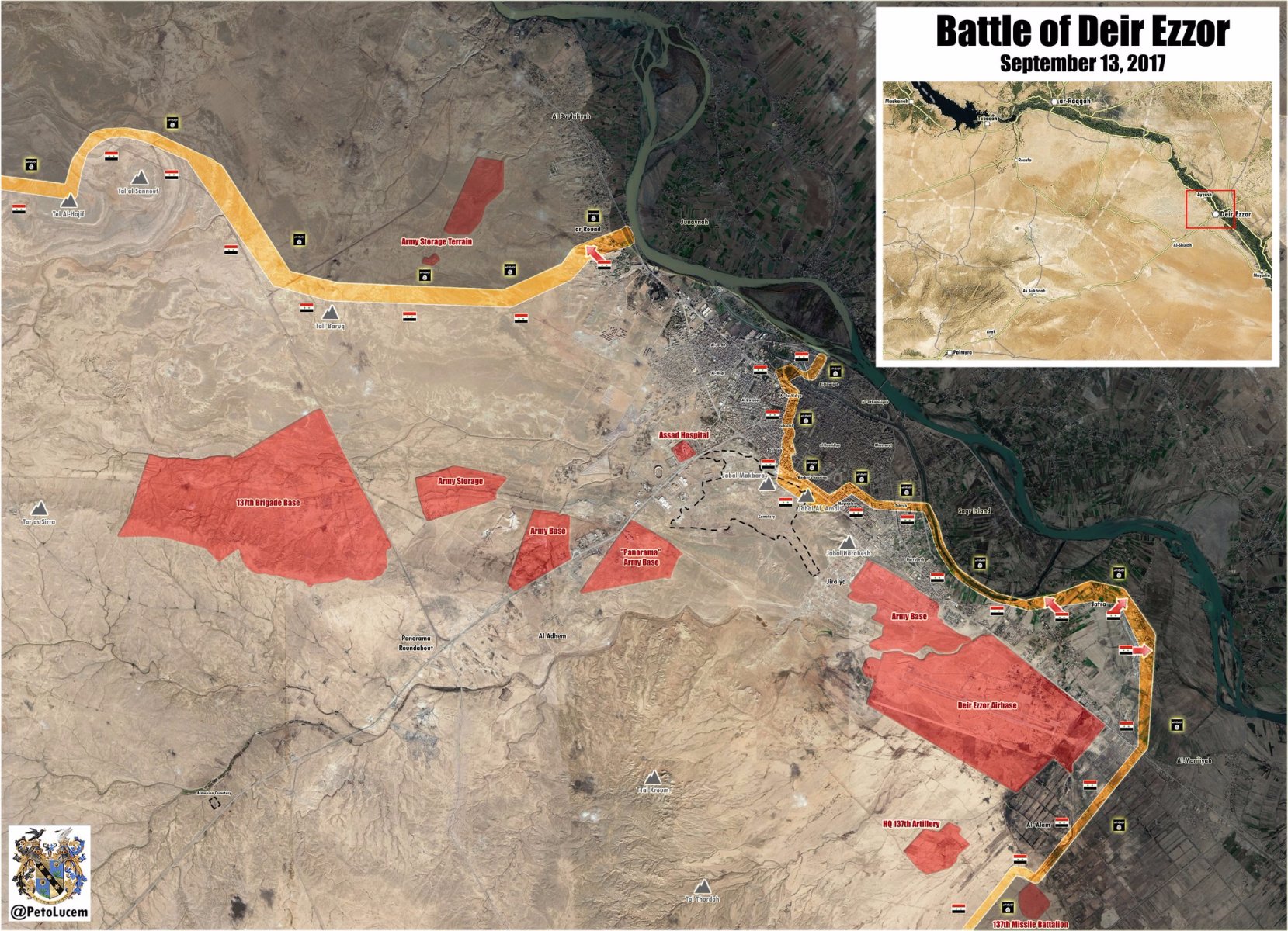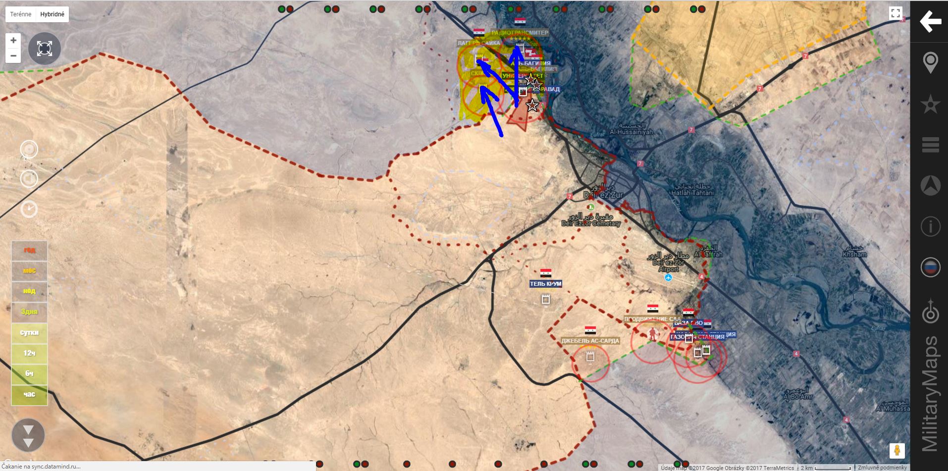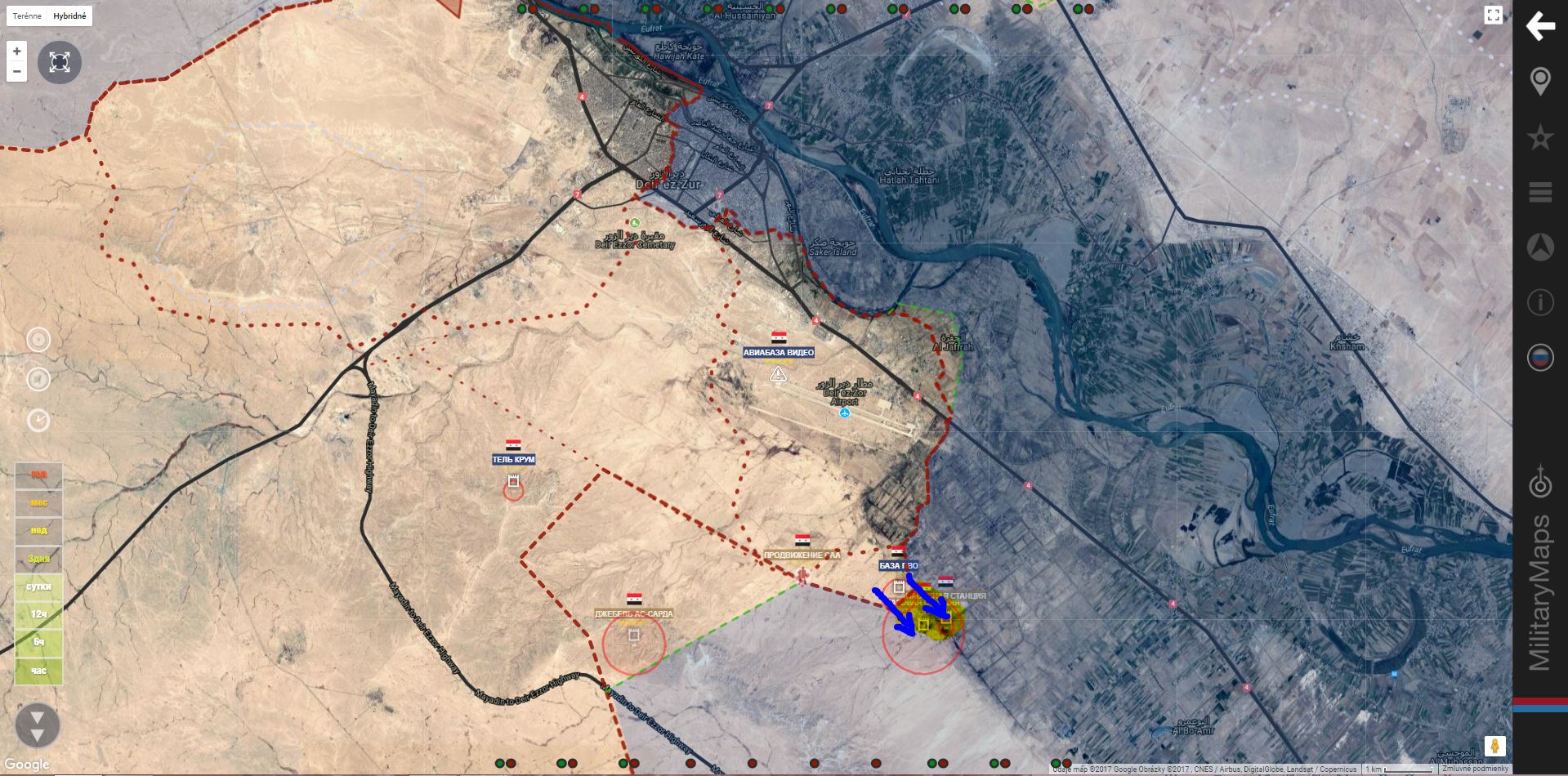 Deir Ezzor. SAA+ získala Al-Jazeera University a al-Rawad, pri letisku bázu PVO, Tal Kroum" a masív Tharda Mountain.