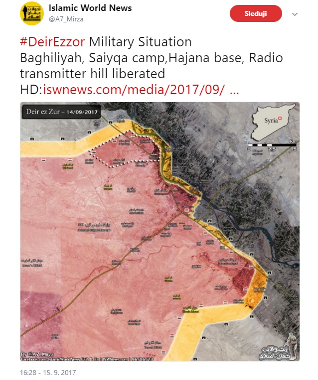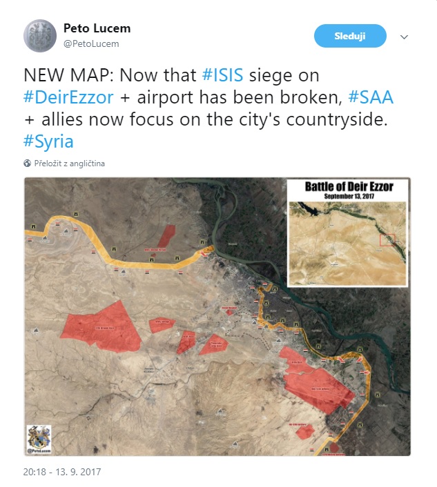 Pribudla Al MariajaIgorT píše: ↑16 zář 2017, 08:41Deir Ezzor. SAA+ kontroluje Suk Al Charaij, Rajim At Tabb a Tel Al Kasimiju.