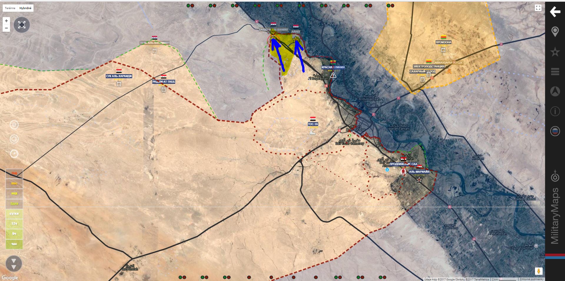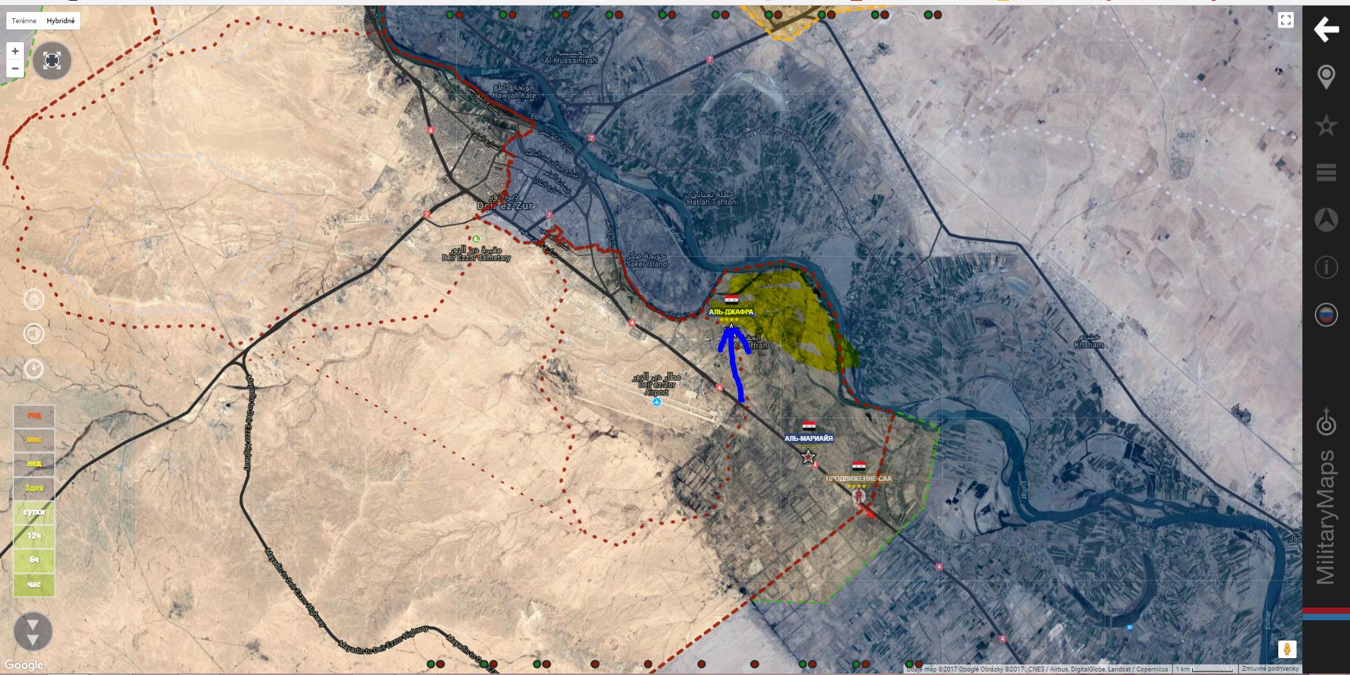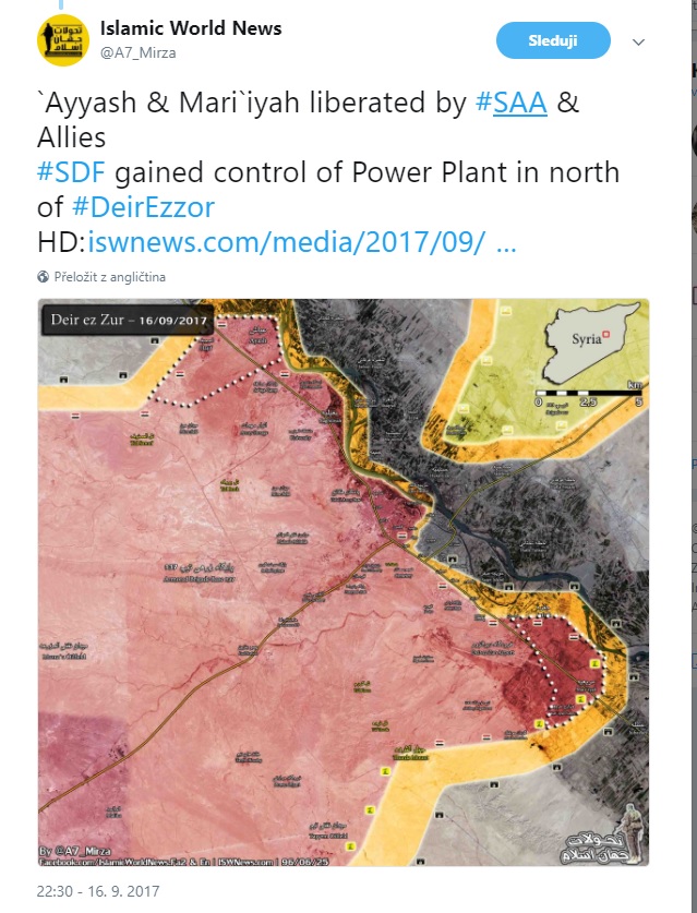 Deir Ezzor. V oblasti Al Jafra sa dostala SAA+ po Eufrat. (tam by sa mohol prekročiť?)
