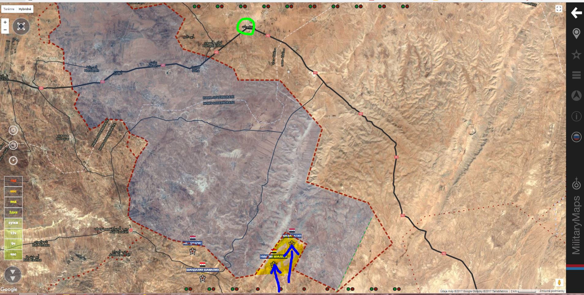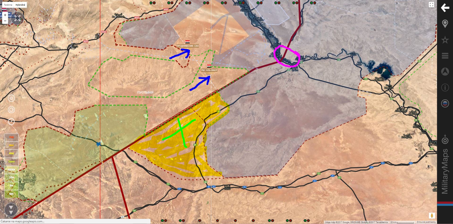 Pripravuje sa (alebo už prebieha) operácia na postup pozdĺž iracko-sýrskej hranice smerom na Al Bukamal. Status výslovne spomína Sýrčanov, Iráncov, Libanončanov, Pakistancov, Iračanov, Afgancov a Rusov. (SAA, Revolučné gardy, Hizballáh, shia milície z Iraku, Liwa Fatemiyoun - Afgnistan, Liwa Zainebiyoun - Pakistan, sýrske milície, Rusko.)