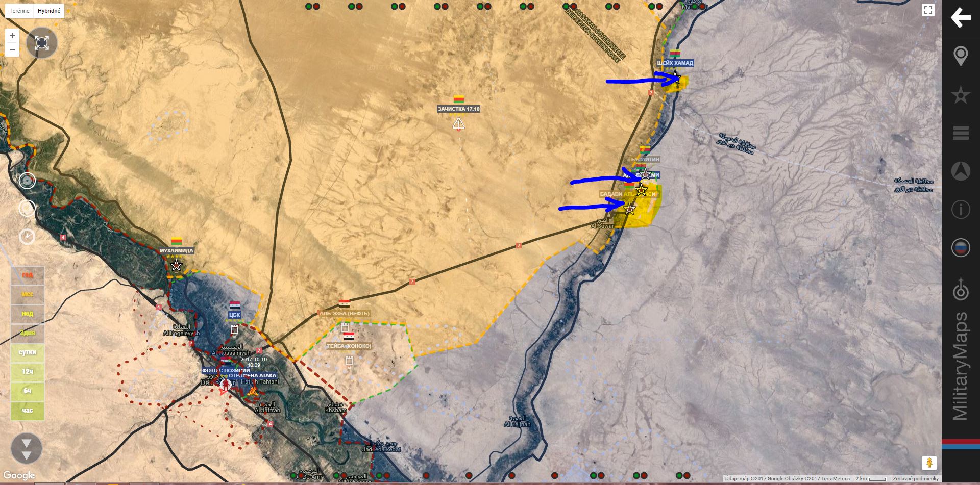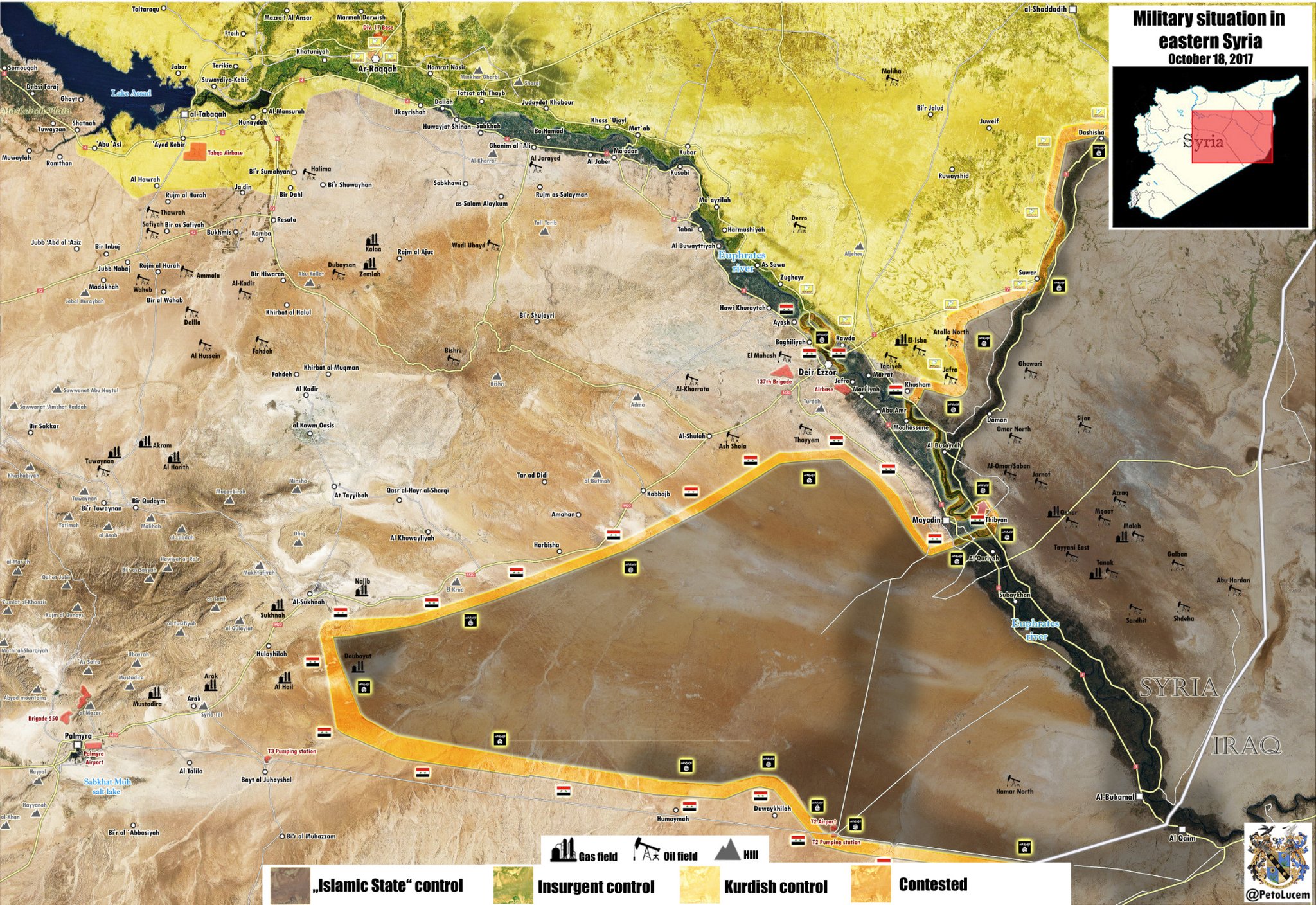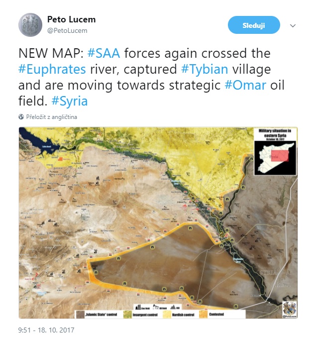 Podľa jedného reportéra z Ruska dnes vojaci sýrskej armády dosiahli okraj Al-Omar Oil Field len pred chvíľou, keď predtým prešli na východný breh rieky Eufrat, oproti mestu Al-Mayadeen a obsadili mesto Zebán.