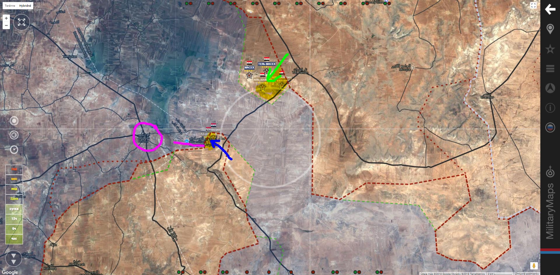 Abú Duhur. Situácia po postupe SAA+ pri letisku. Ovládla Al-Jaakiah, Hamediea, Hamediea Shaddad, Chalaviju a Chajaniju.