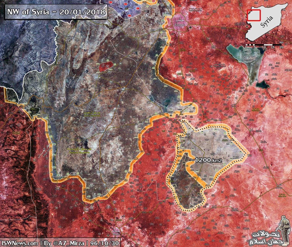 TAF (turecké letecké síly) spustily první letecké útoky, region Afrin a Tell Rifaat, nakoply první stupeň ofenzívy.