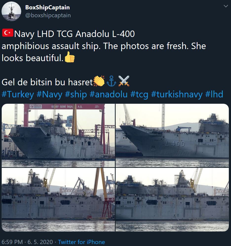 Stav prác na výstavbe Tureckej lode TCG Anadolu, L-400, plánovaného nosiča aj lietadiel rodiny F-35: