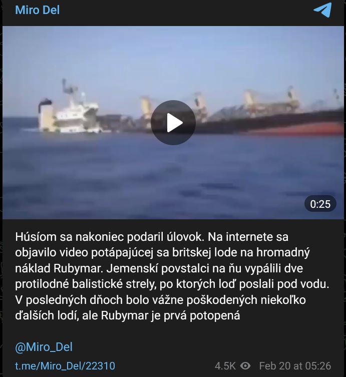 Jeho poselství následovalo po oznámení Bruselu o oficiálním zahájení námořní operace EU s krycím názvem Aspides – řecky štít.