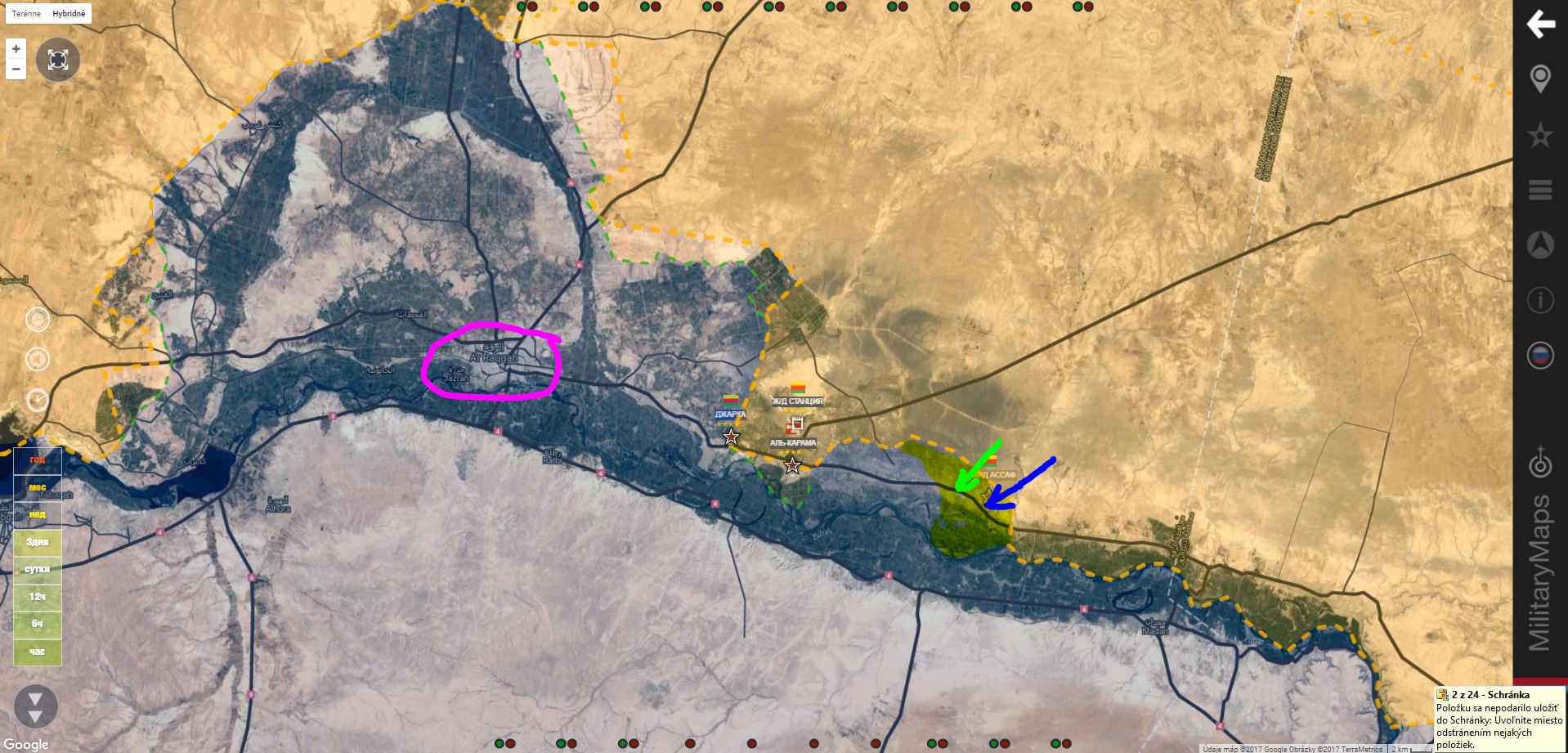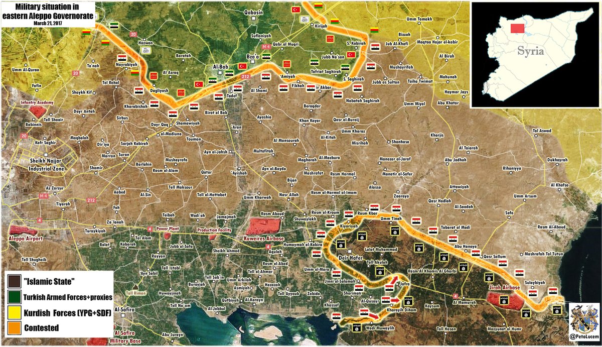 Americké speciální jednotky společně s bojovníky SDF obsadili vesnice Abu Hurayrah, Al-Mushayrifah Al-Krain a Al-Jameen na jižním břehu přehrady al-Assad. https://twitter.com/Baco_UK/status/844531555053768704