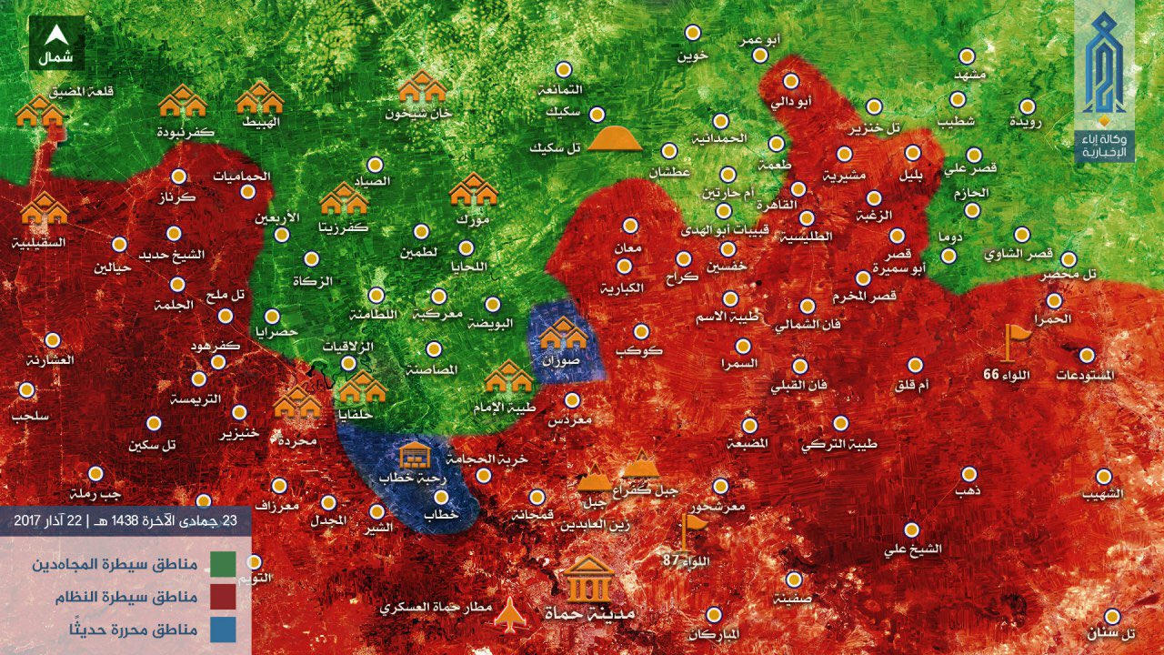 Aktuální mapa situace v Hamá