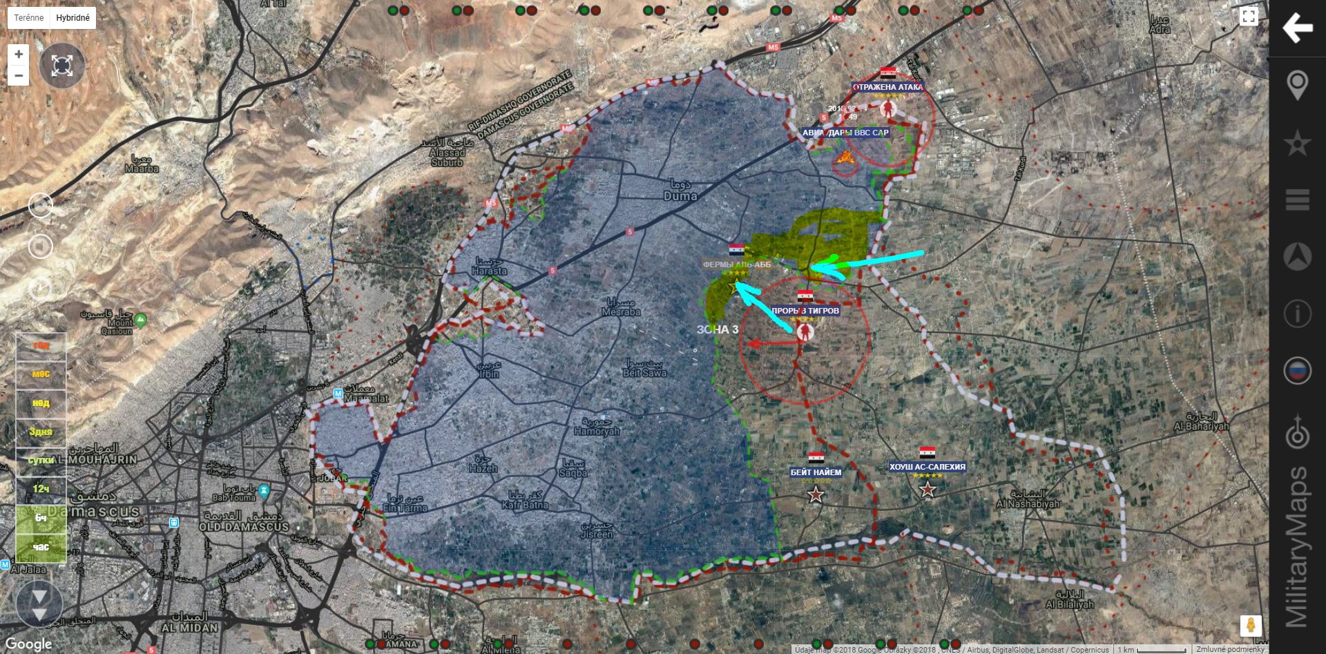 V. Ghouta. SAA+ prelomila ďalšiu líniu a vstúpila na územia fariem Al-Ashari, Al-Abbh a Ash-Shifuniya-Duma.
