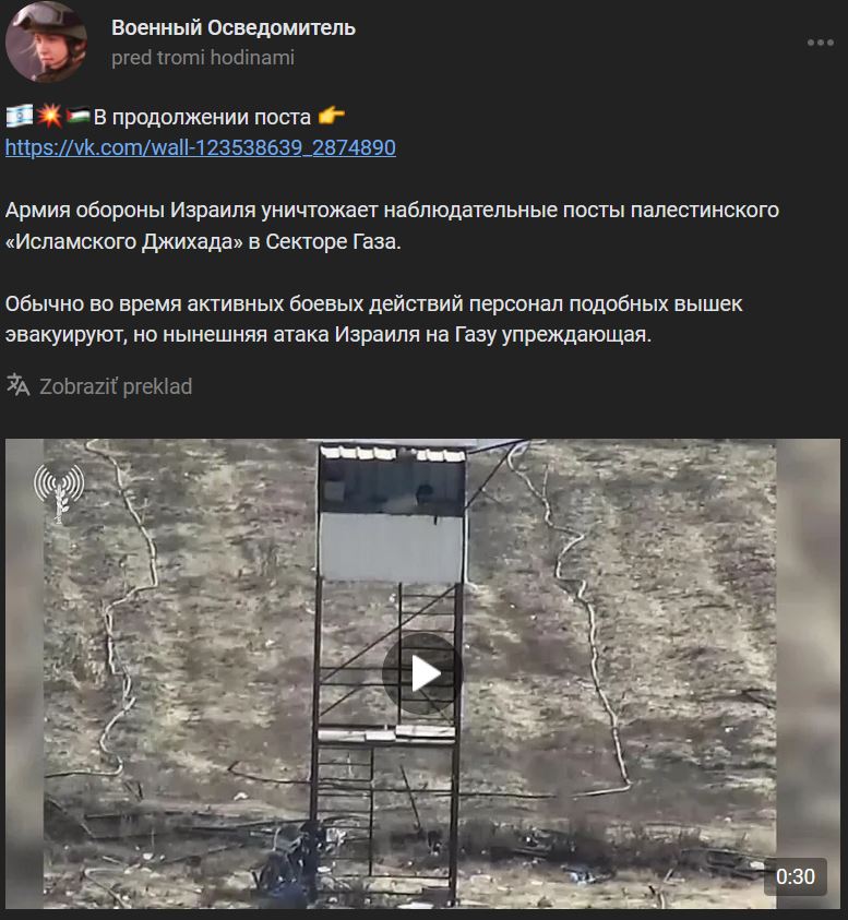 Izraelské obranné sily ničia pozorovacie stanovištia palestínskeho Islamského džihádu v pásme Gazy. Bežne sa takéto veže evakuujú počas aktívnych bojov, ale súčasný útok Izraela na Gazu je preventívny.