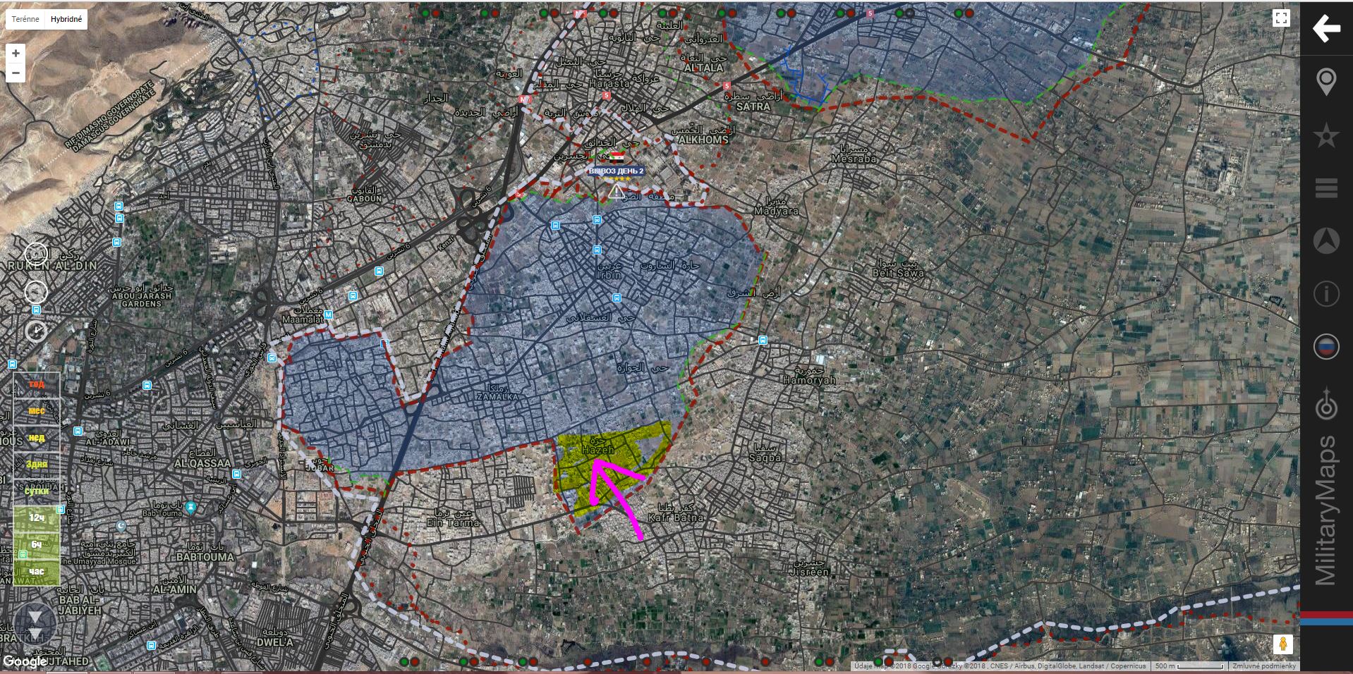 Asi 994 osob (17 busov) opustilo Arbin, Zamalku, AinTarmu a Hazeh, odišli do QalaatAlMadiq, smerujúc dalej do provincie Idlib. Druhá skupina odišla z Východnej Ghouty o 14.24 miestneho casu.