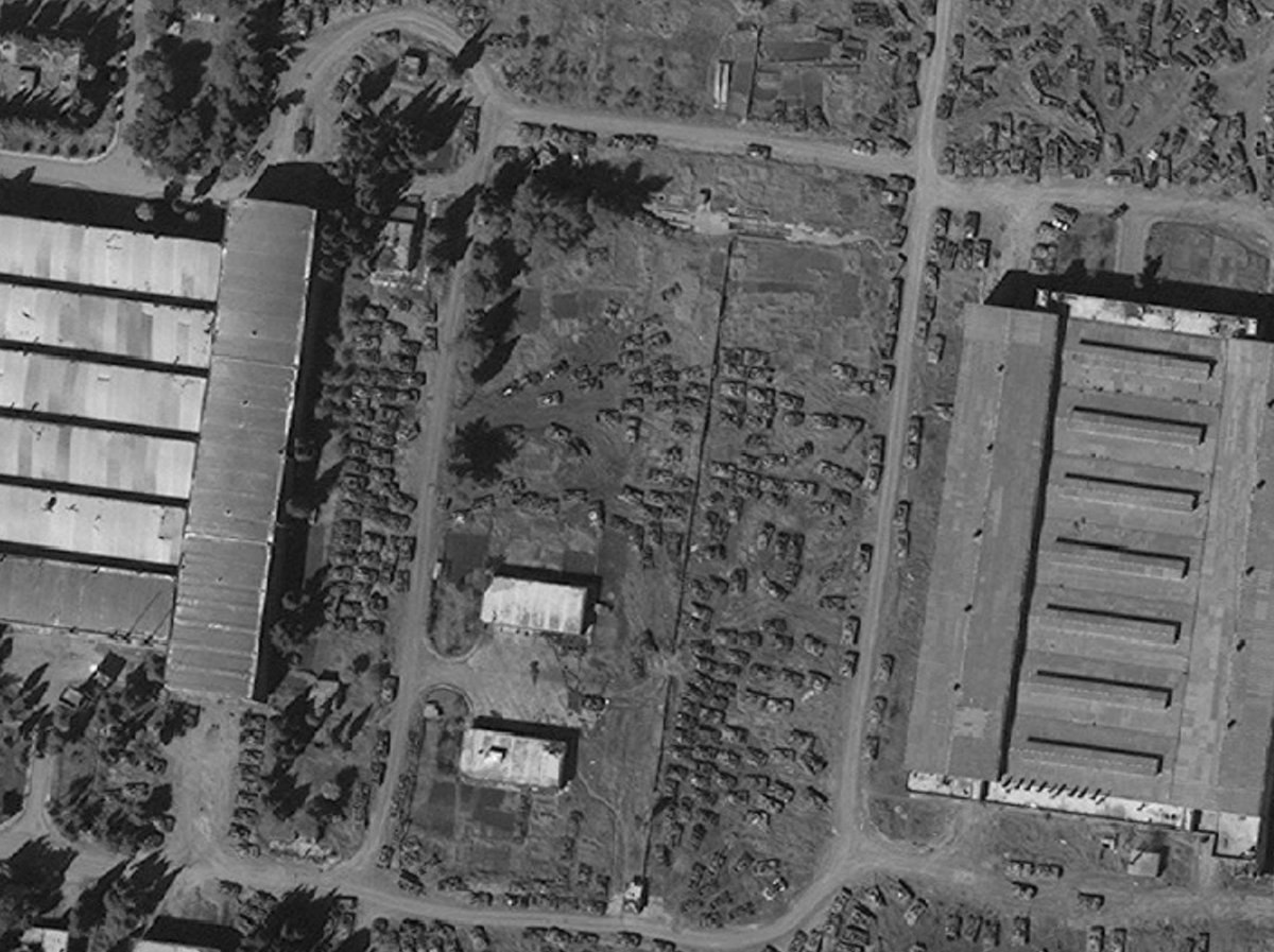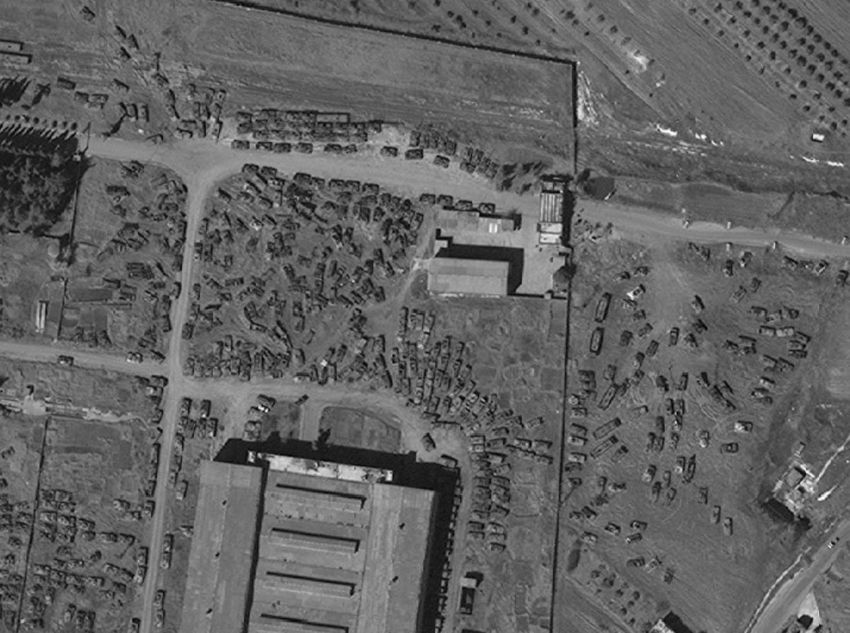 Opravářská základna SAA. Celkem bylo napočítáno zhruba tisíc různých obrněných vozidel