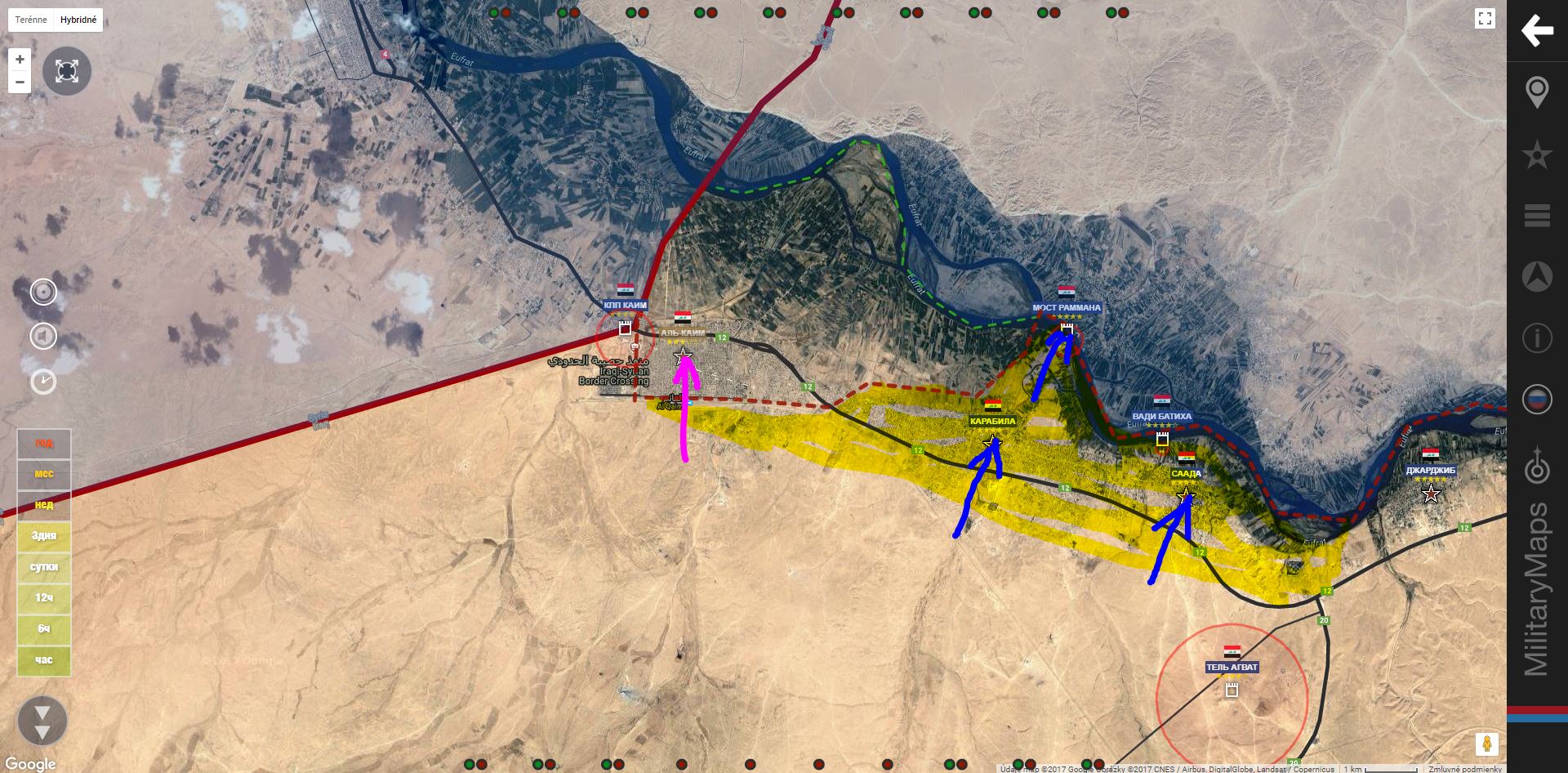 Al Quaim, aktualizácia. IA+ vyčistila oblasť mostu Rammana po Eufrat, útočí na Žilkomplex.