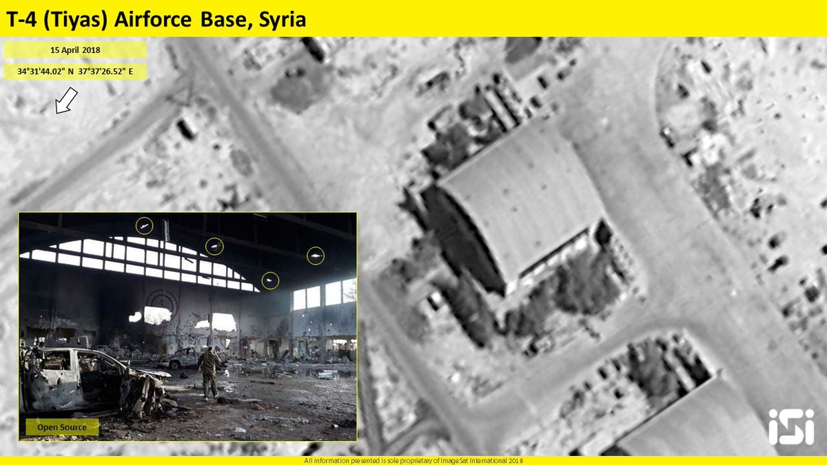 Izraelská média zveřejňují satelitní snímky syrské letecké základny T-4 před a po leteckém útoku v dubnu