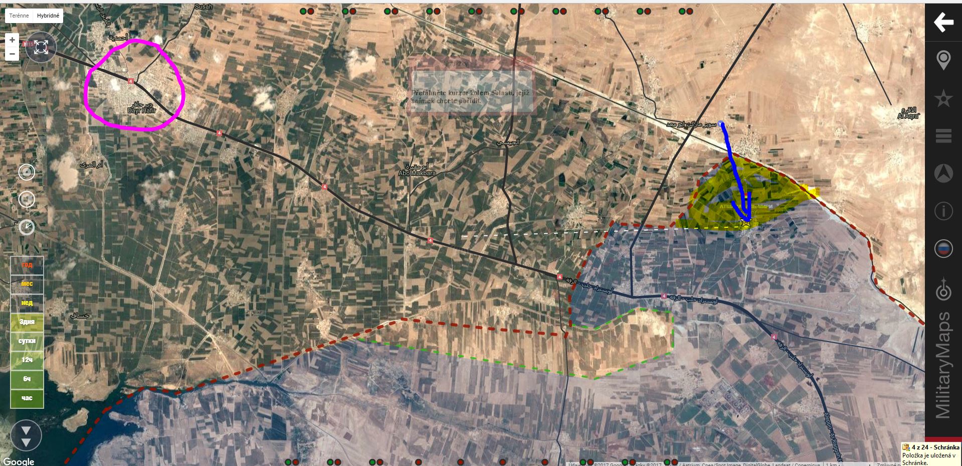 Ide o to, že následná prvá pomoc WH musela prebiehať skoro ráno alebo včera večer, pri nízkej polohe slnka (veľmi dlhé tiene ), .... asi skôr ešte večer .... Asi potom sa moderate media jihadistov a svetové médiá rozhodli tento prúser Al Kajdakov riesit kampaňou o chemických útokov Rusov a SAA ...skflanker_ píše: ↑04 dub 2017, 20:08▲ Sýrska armáda zničila sklady s chemickými zbraňami militantov v provincii Idlib
