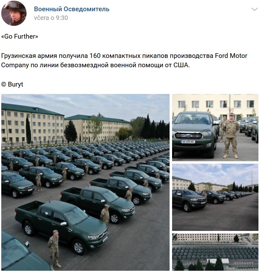 Gruzínska armáda v rámci bezodplatnej vojenskej pomoci z USA dostali ďalších 160ks vozidiel od spoločnosti Ford