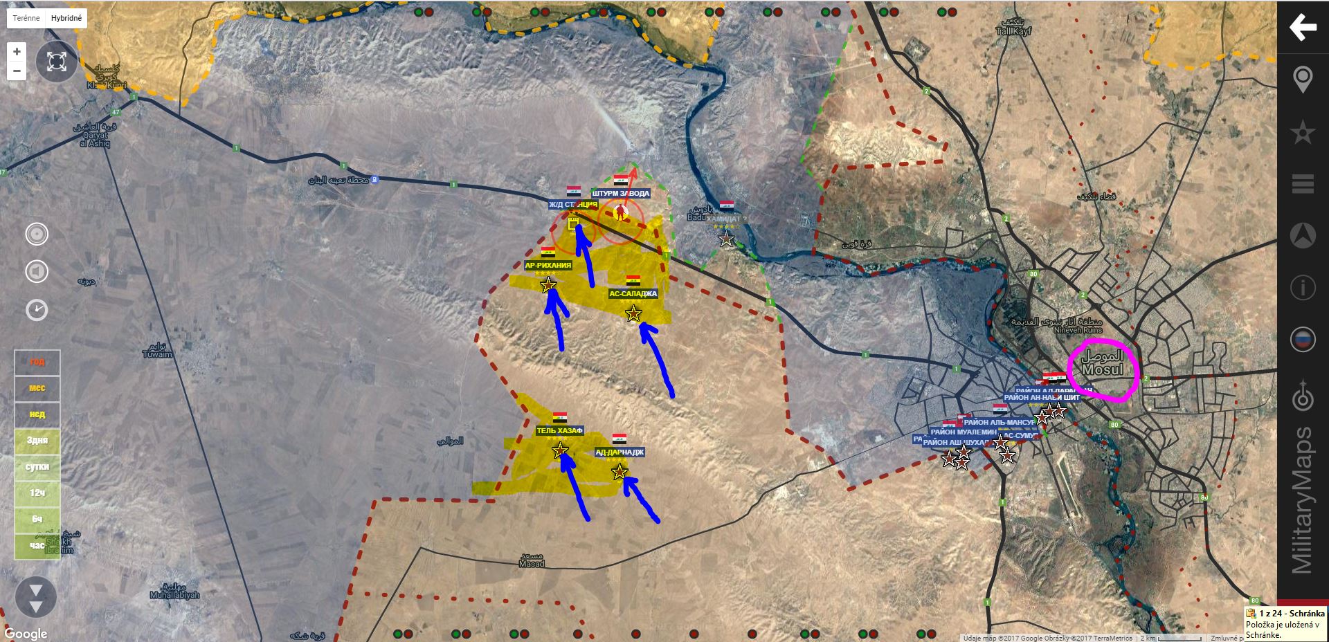 Zajímavá mapa postupu iráckých vojsk od roku 2014 do konce roku 2016