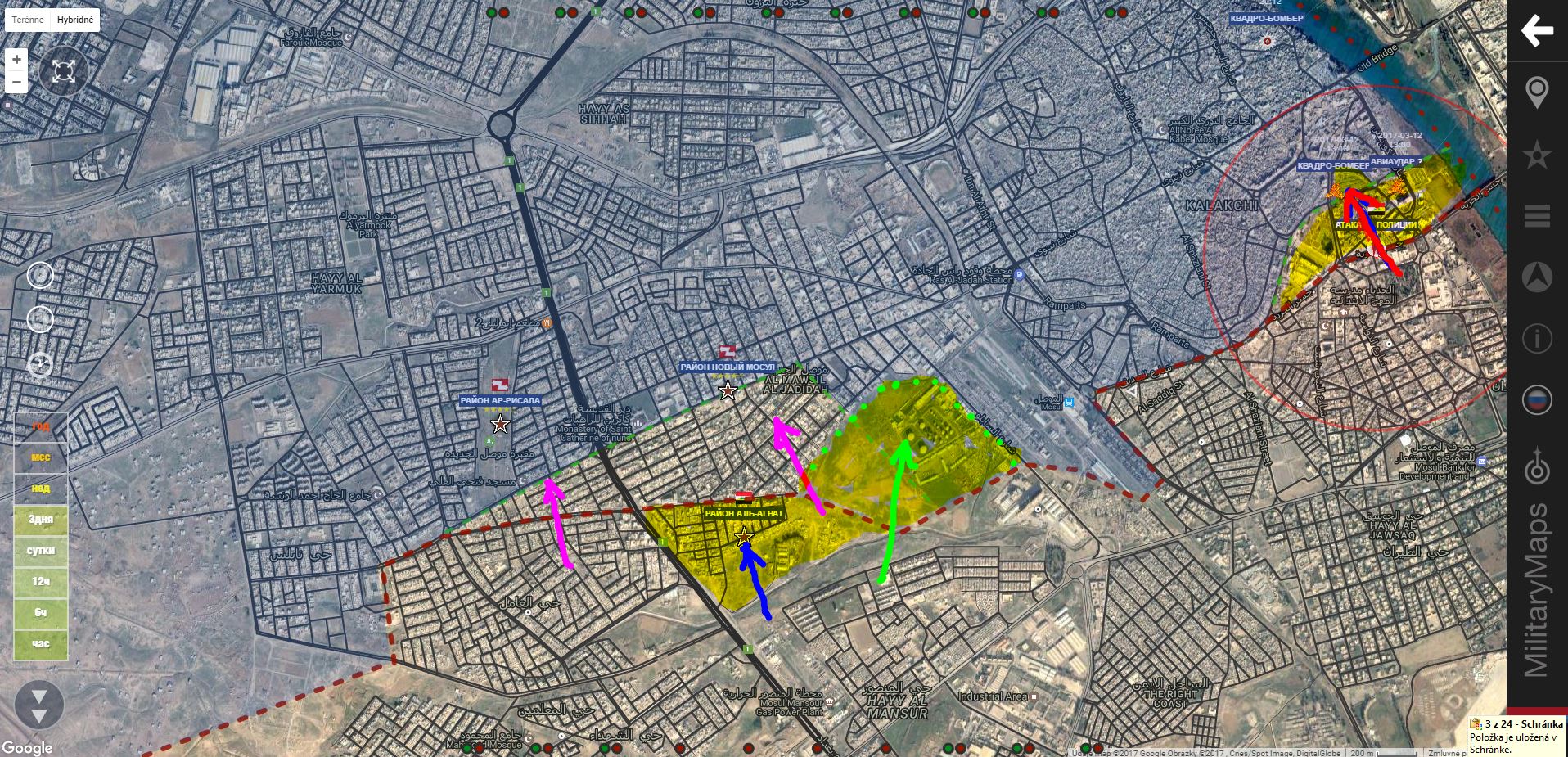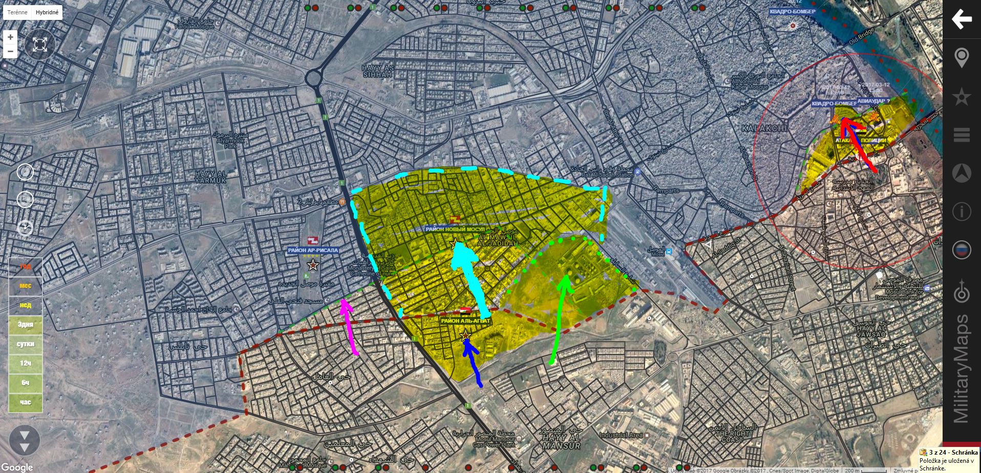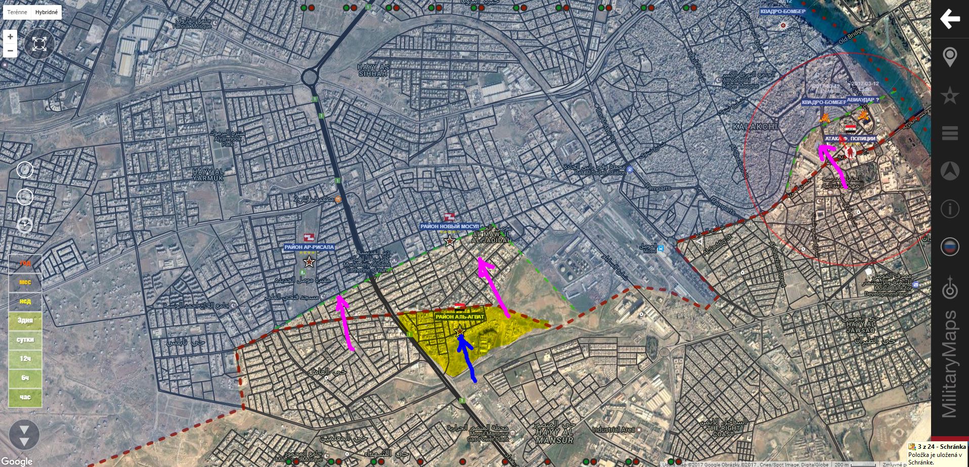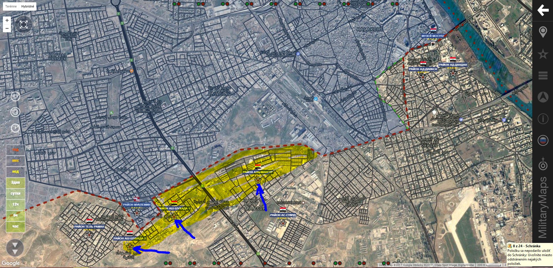 Aktualizácia 12.00. K oslobodeným územiam pribudol sklad paliva(rafinéria?)IgorT píše: ↑13 bře 2017, 08:03Z. Mosul. IA+ pridala trh Al Arbia a námestie Ar Ramah