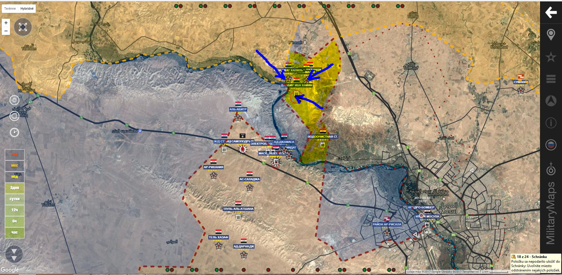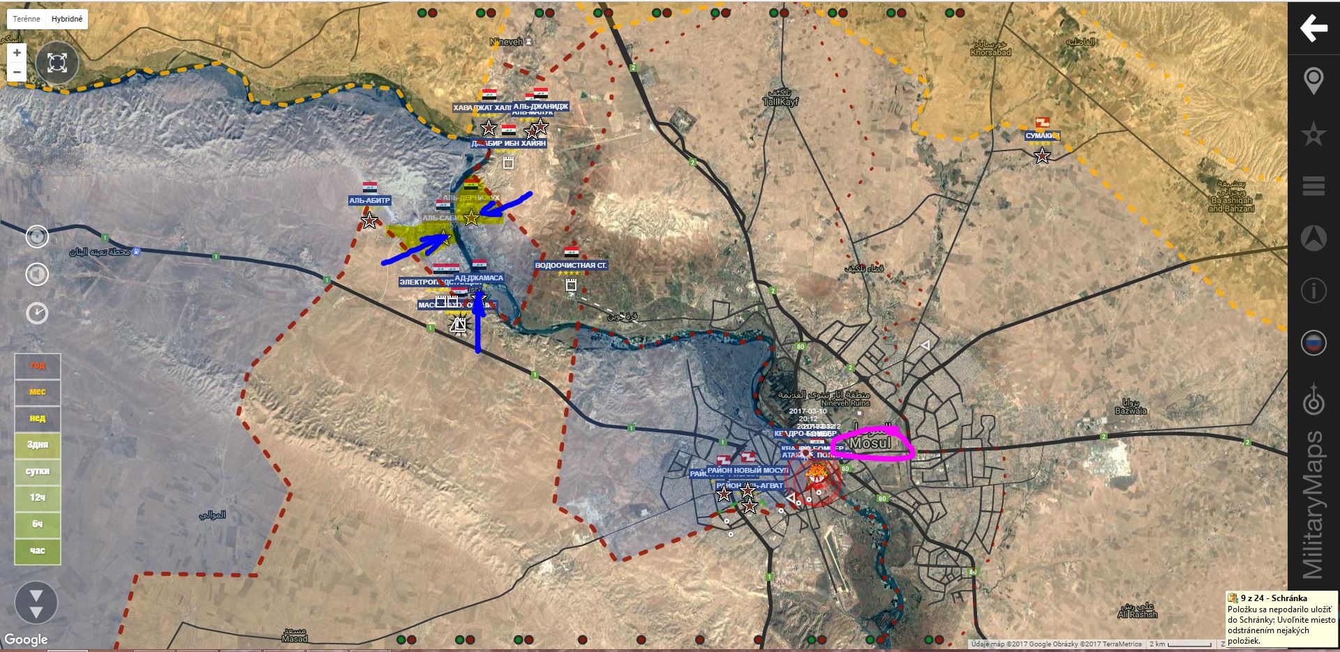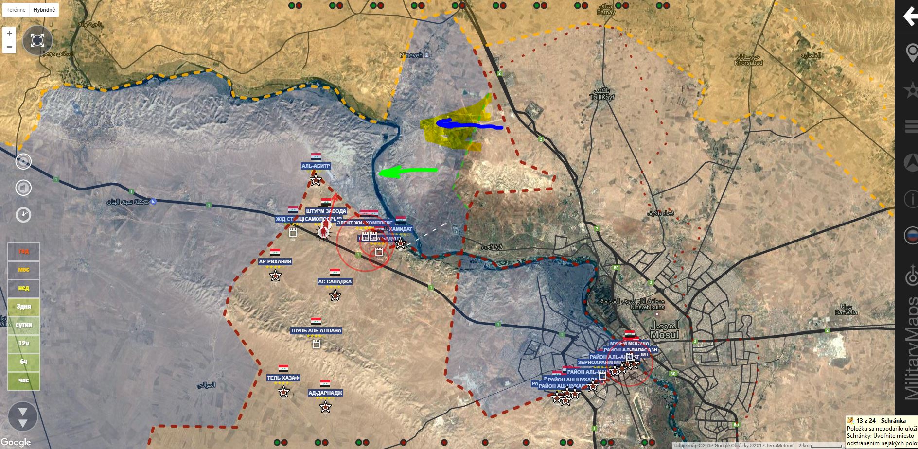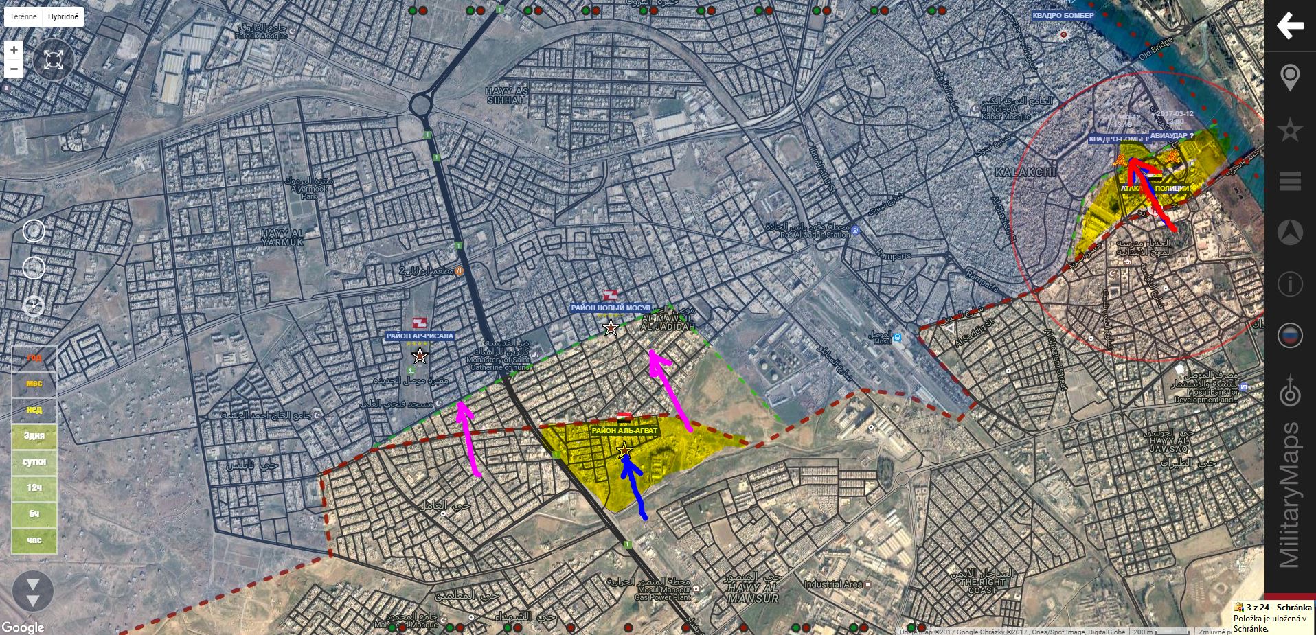 Aktualizácia 12.00. K oslobodeným územiam pribudol sklad paliva(rafinéria?)IgorT píše: ↑13 bře 2017, 08:03Z. Mosul. IA+ pridala trh Al Arbia a námestie Ar Ramah