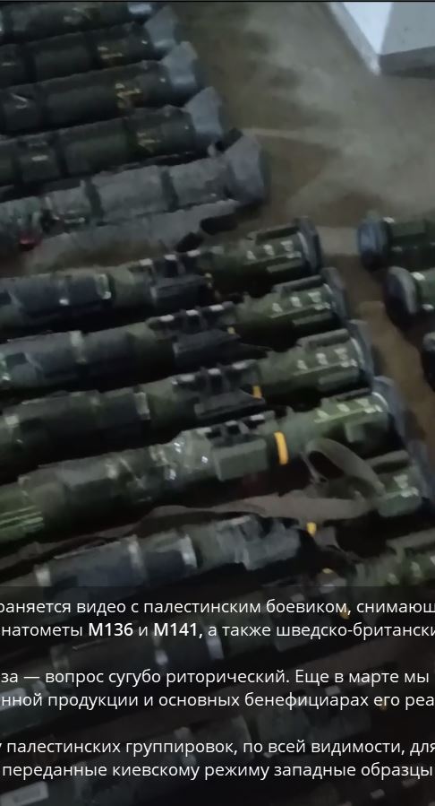 A samotný výskyt týchto zbraní od palestínskych skupín zrejme nie je pre Mossad žiadnym tajomstvom už dlhší čas: v júni Benjamin Netanjahu výslovne uviedol (https://t.me/rybar/48848), že západné zbrane odovzdané kyjevskému režimu sa našli v blízkosti hraníc Izraela.