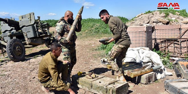 Reportér SANA v Hame povedal, že jednotka armády vykonala raketové a delostrelecké údery na teroristov v okolí dediny al-Hweiz na severe al-Ghabskej planiny, pričom mnoho z nich zabila a zranila.