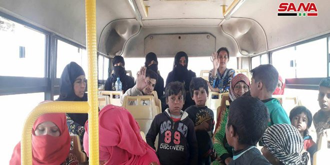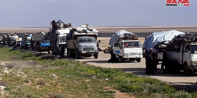 Homs, SANA - Stovky vysídlených sýrskych rodín žijúcich v al-Rukbanskom kempe v oblasti al-Tanf na sýrsko-jordánskych hraniciach sa vo štvrtok 2.V vrátili cez koridor Jalighem.