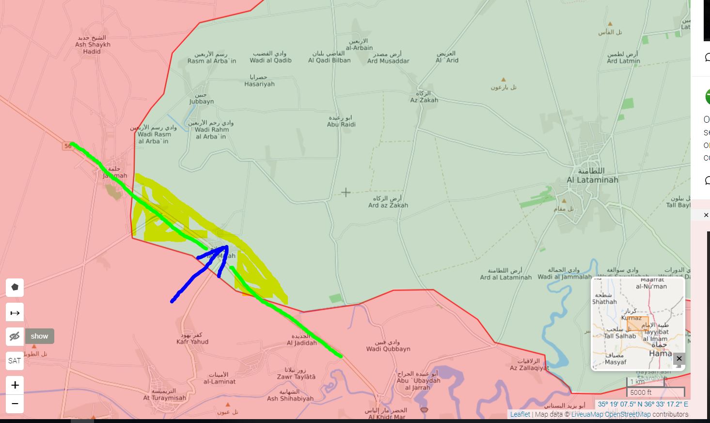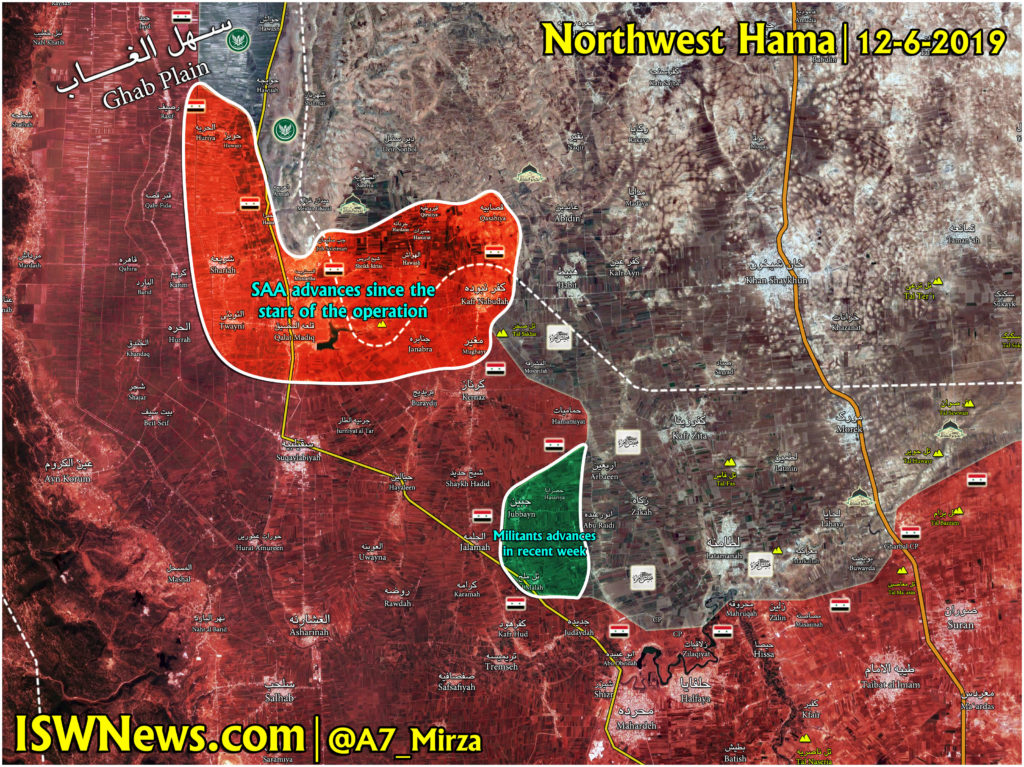 Tato mapa poskytuje celkový pohled na zisky a neúspěchy syrské armády a jejích spojenců v severozápadním Hama od začátku nového kola nepřátelských akcí v této oblasti v květnu. https://southfront.org/map-update-gains ... tern-hama/