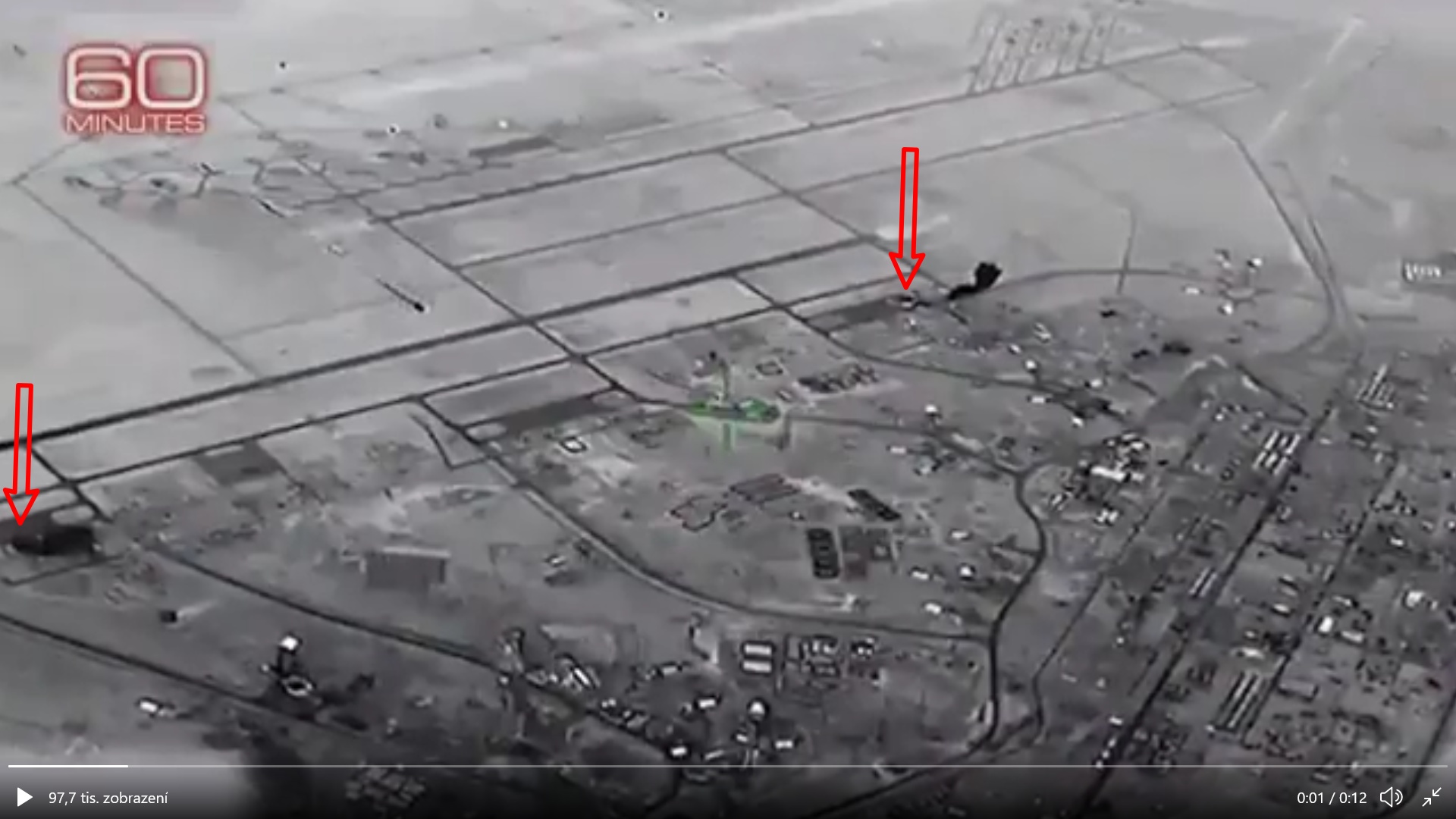 Odtajněné video útoku salvou čtyř íránských balistických raket na leteckou základnu Ain Al Assad v Iráku z 8.1.2020.
