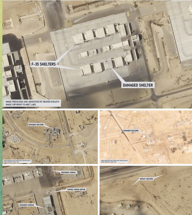+Zábery potvrdzujú, že izraelská vojenská letecká základňa Nevatim bola zasiahnutá viac ako 10-krát. Na tejto leteckej základni sa nachádzali izraelské stíhačky F-35.