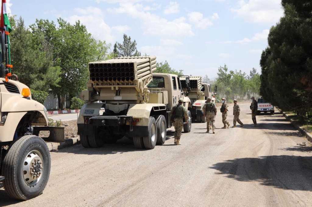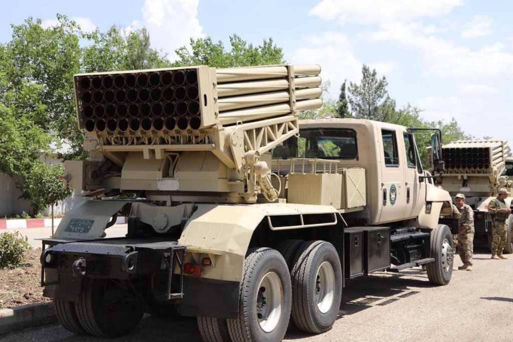 122mm raketomet Grad na podvozku nákladného vozidla Navistar 7000-MV irackej Pešmergy: