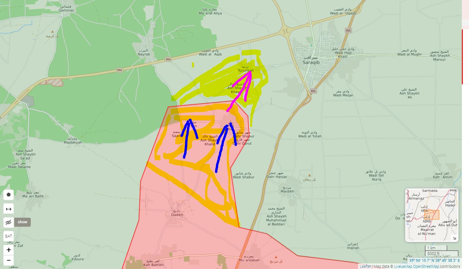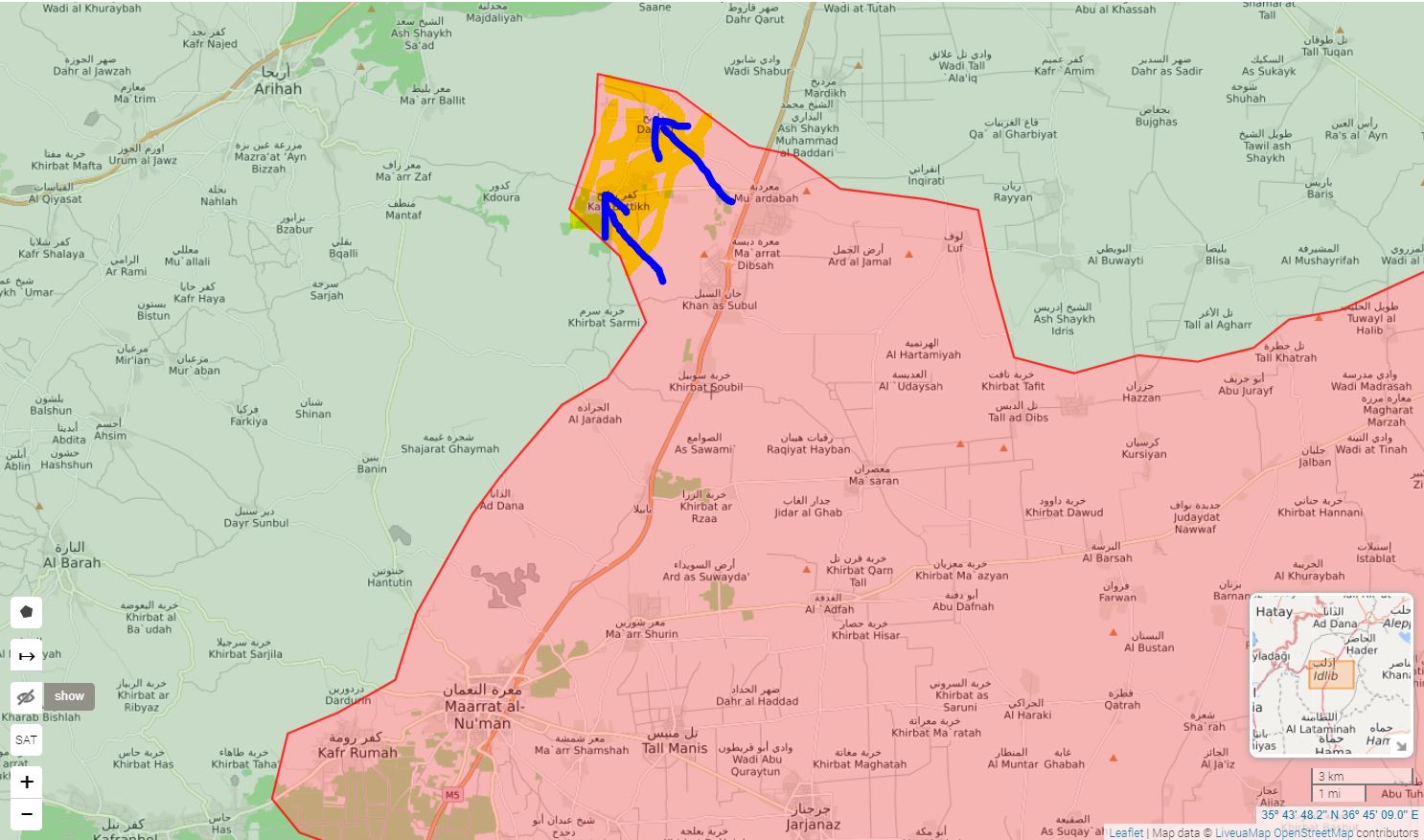SAA vytvořila kordon okolo tureckého pozorovacího stanoviště v Idlibu u dálnice M5 (asi ten u Ma'arat an-Numán)