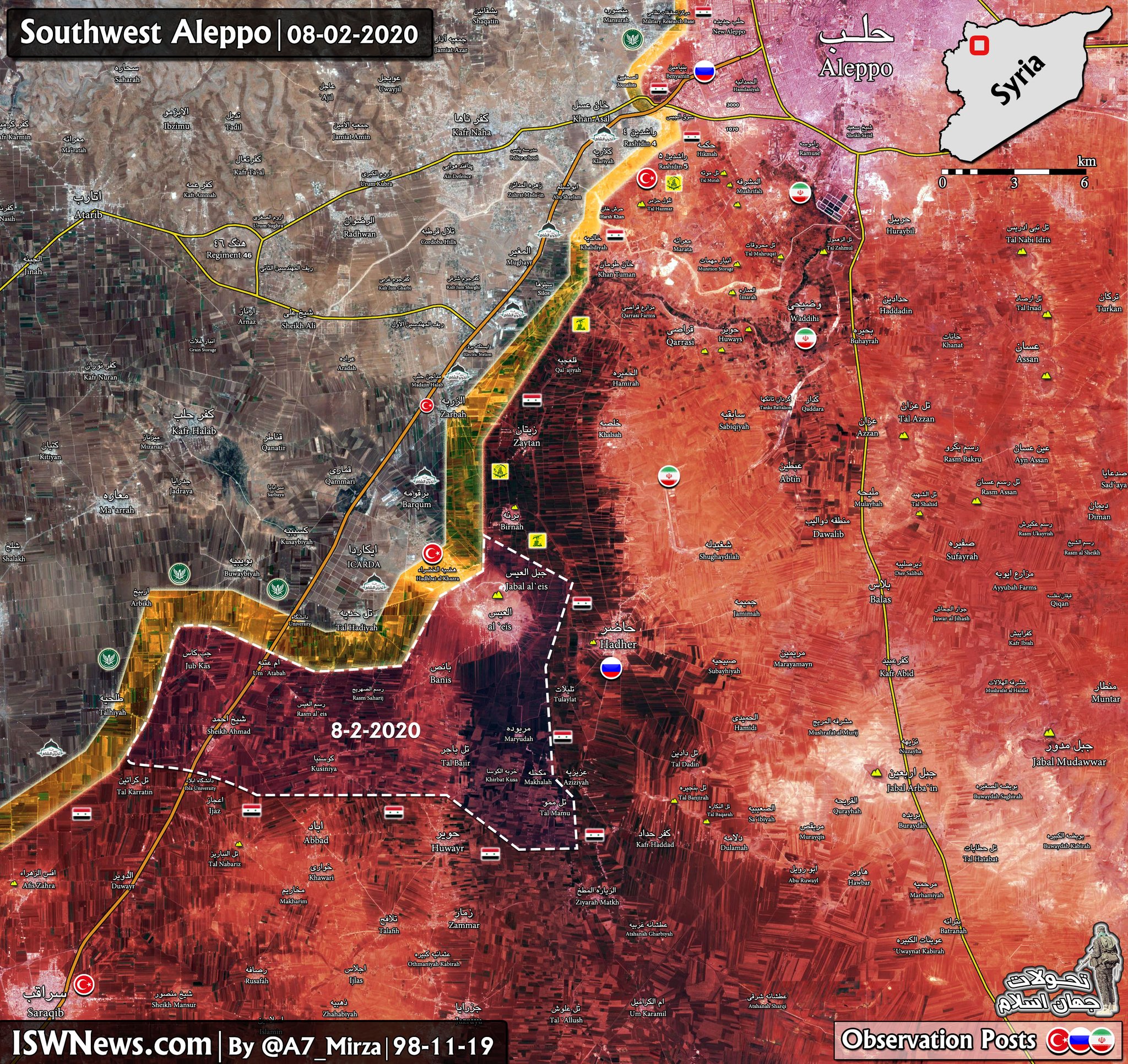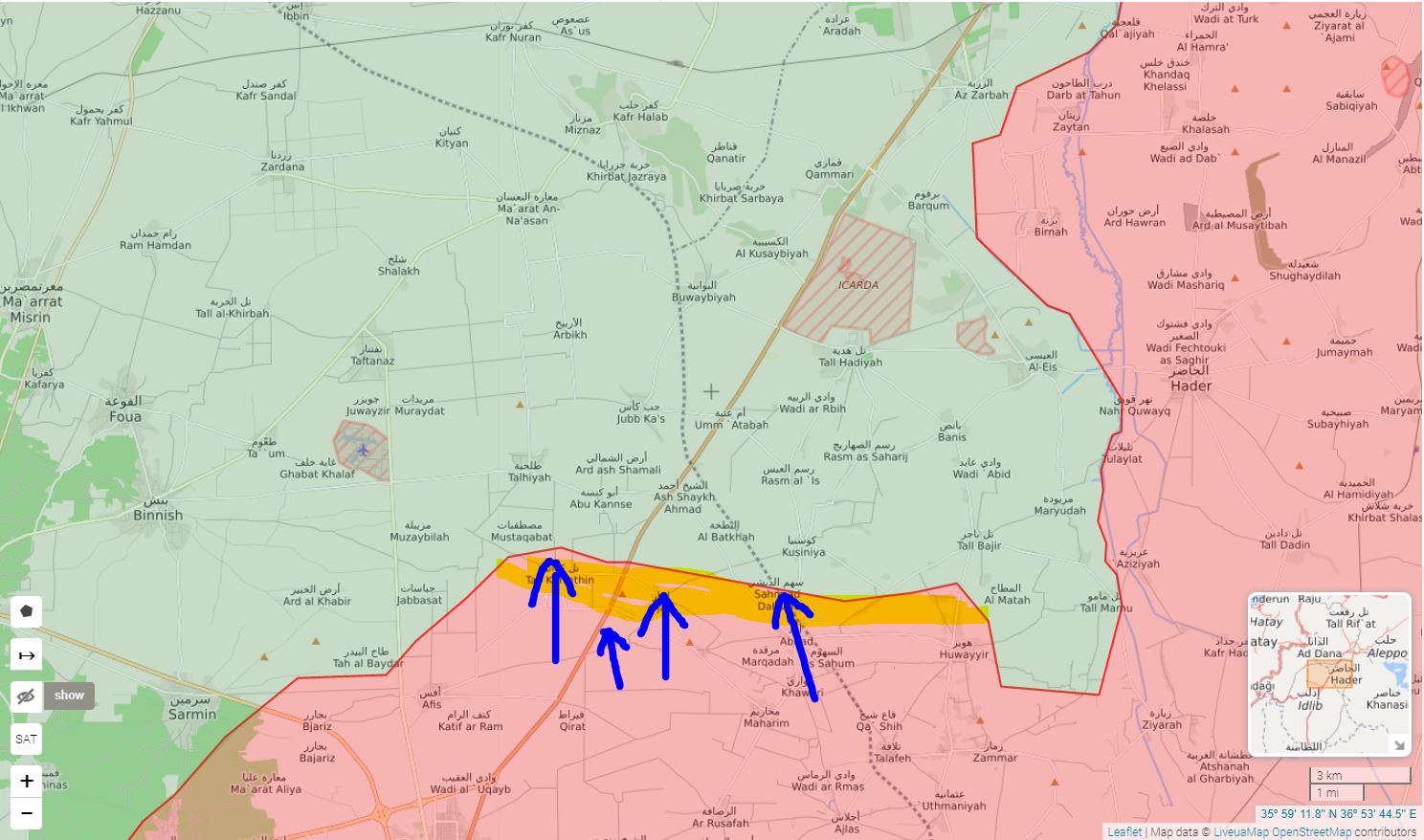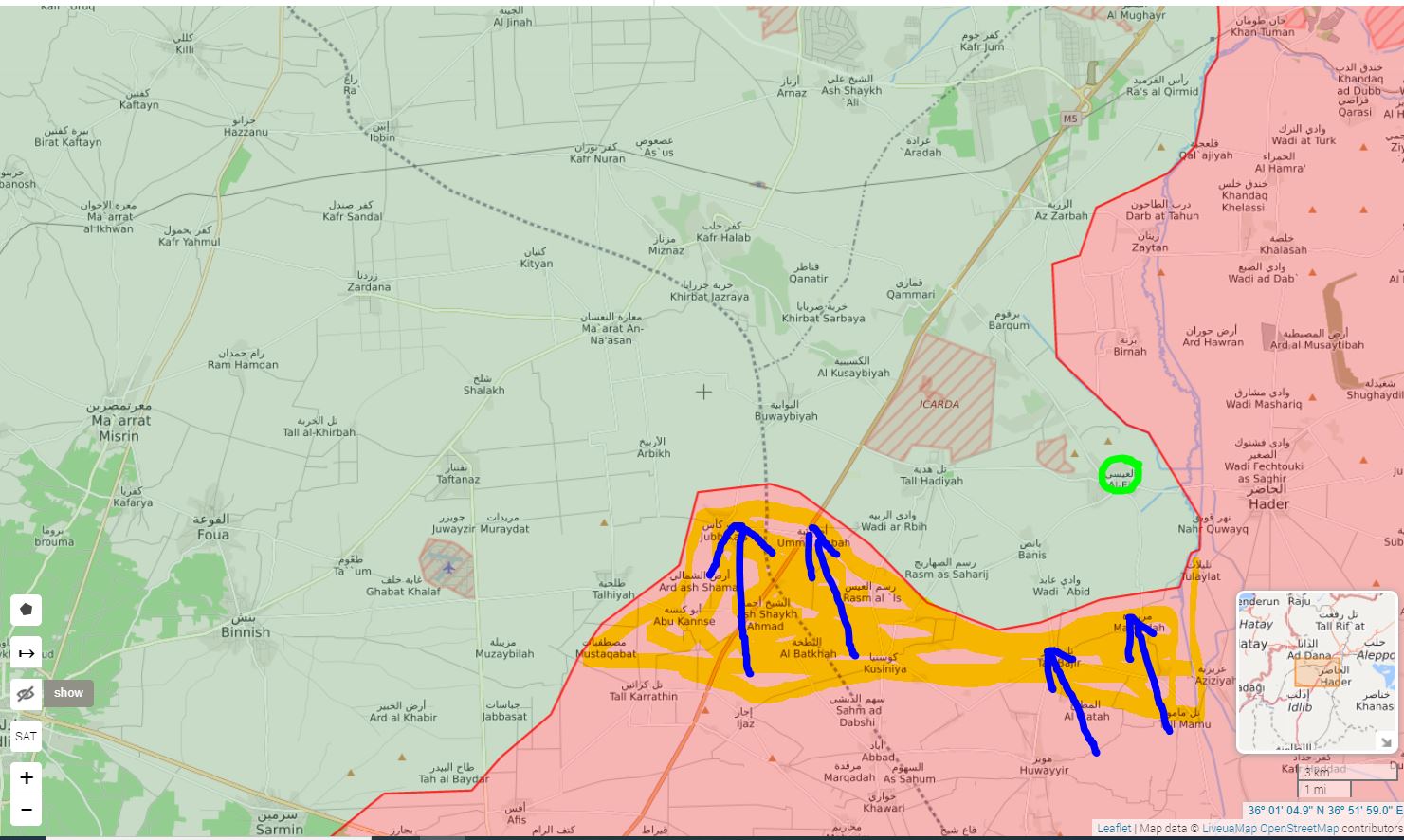 SAA a jej spojenci sa teraz presunujú, aby zabezpečili 25 km pás M5, ktorý sa tiahne medzi oblasťou ICARDA severne od Al-Eis a okresom al-Rashidin 4 západne od mesta Aleppo.