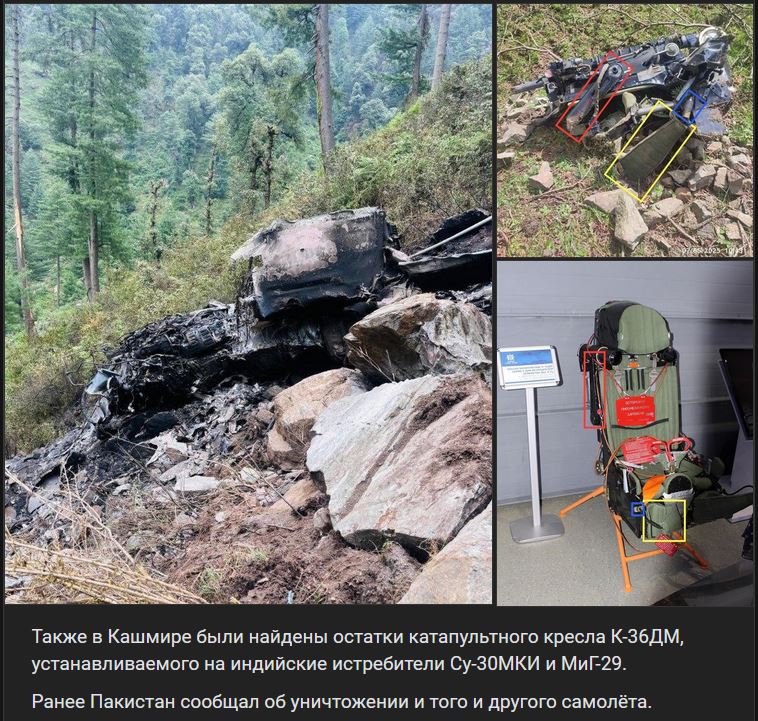 Takže z Kašmíre sa našli aj pozostatky vystreľovacieho sedadla K-36DM (К-36ДМ), ktoré bolo inštalované na indických lietadlách Su-30MKI (Су-30МКИ) a lietadlách rodiny MiG-29 (МиГ-29). Pakistan predtým informoval o zničení oboch lietadiel.