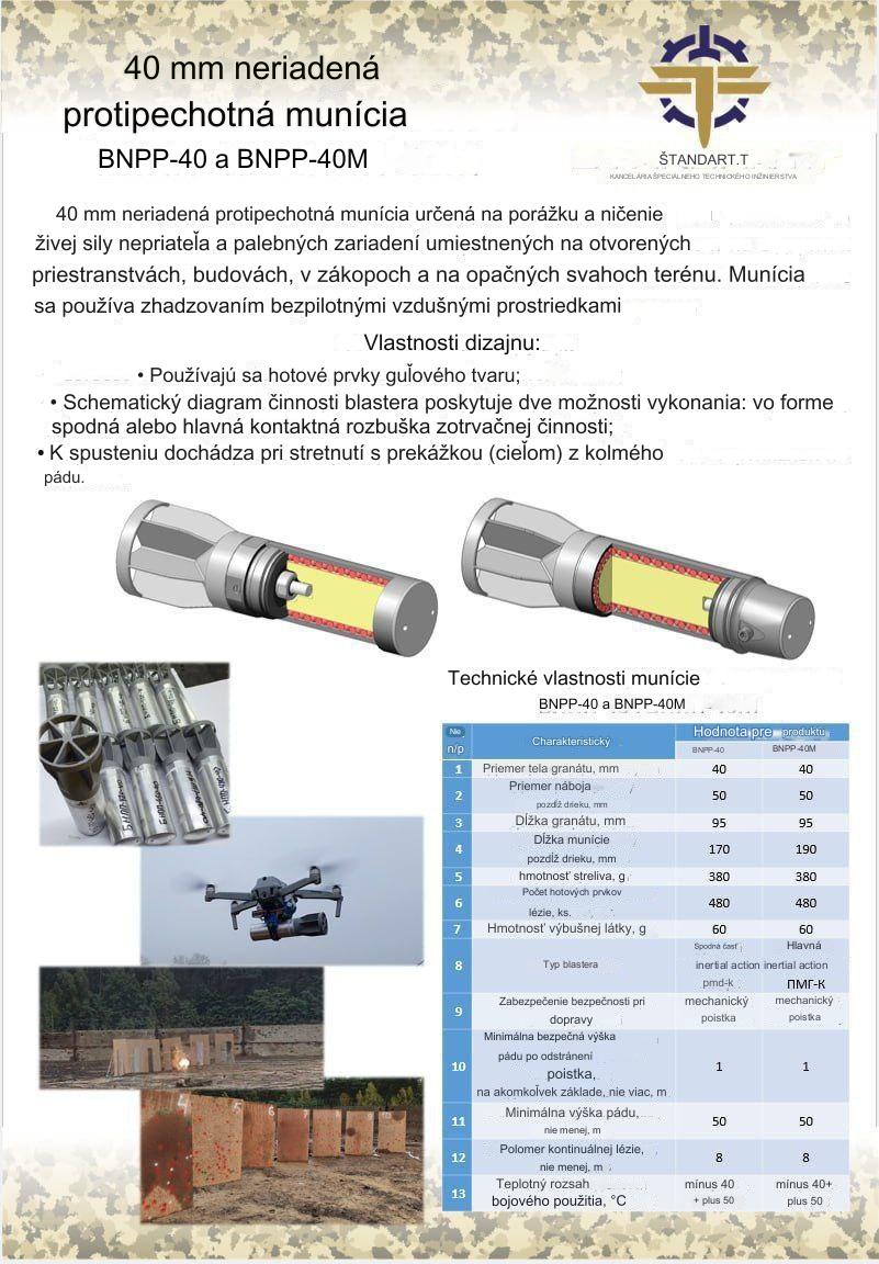 Novinky z vývoj munície zhadzovanej z UA dronov- 40mm kumulatívna neriadená munícia KNB-40 a 40 mm neriadená protipechotná munícia BNPP-40 a BNPP-40M