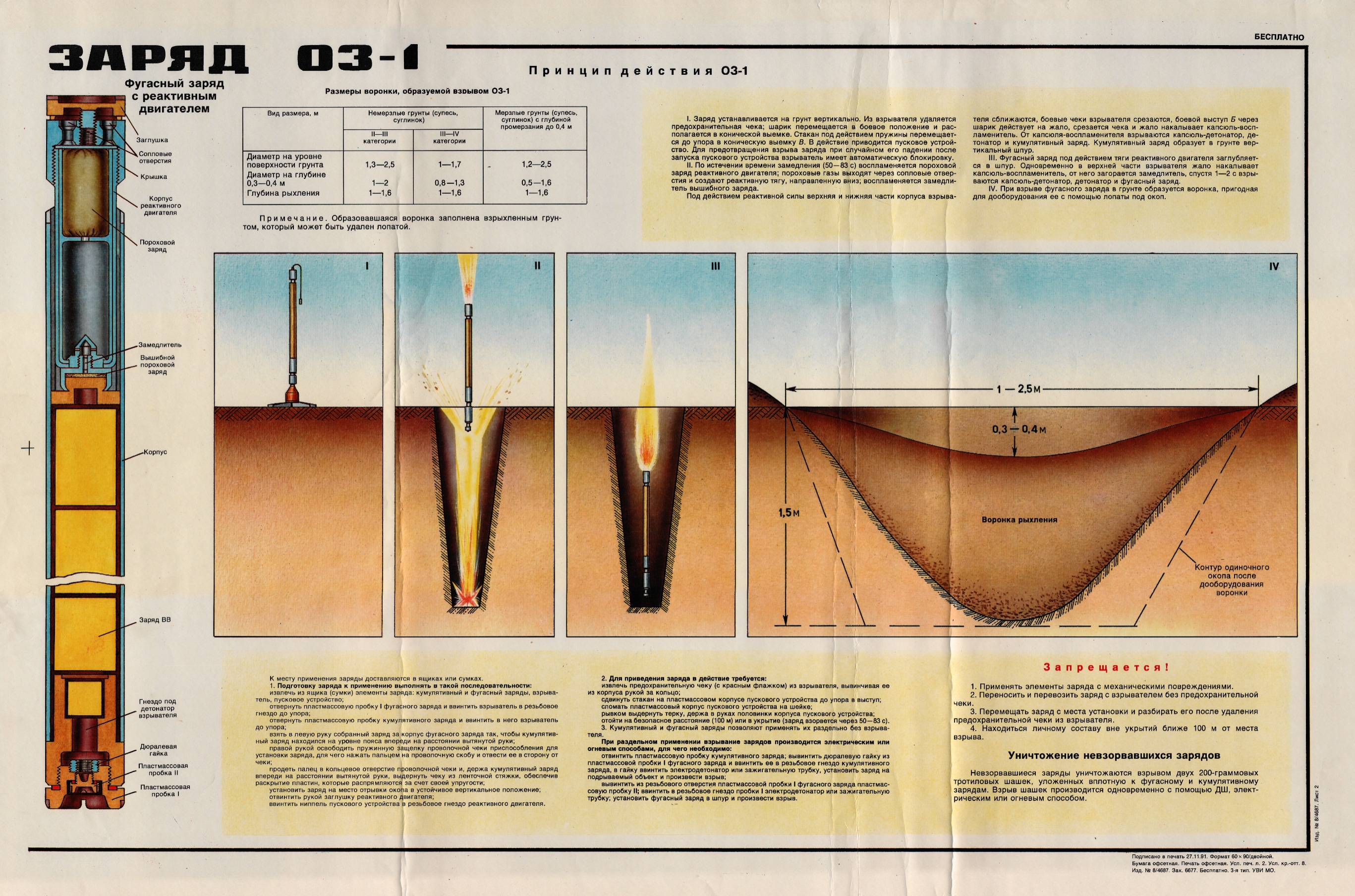 Zákopová nálož OZ-1 slúži na vykopanie okopu pre jednotlivca v ťažkokopnej alebo zamrznutej zemine