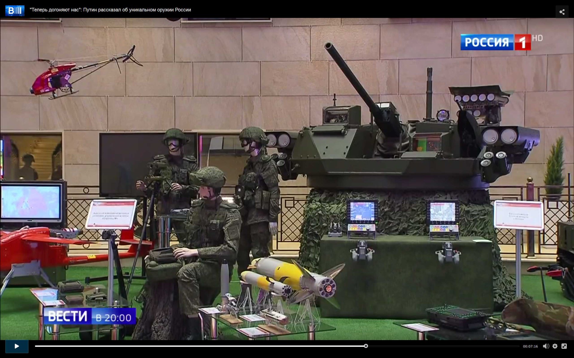 Poprvé oficiálně uvedené schopnosti a účel strategického laserového komplexu Peresvet, dále tam uvádí, že pracují na zmenší Presvetu a plánují jeho umístění na palubě letounu, + vyvíjí nějaké taktické mobilní laserové komplexy proti UAV.