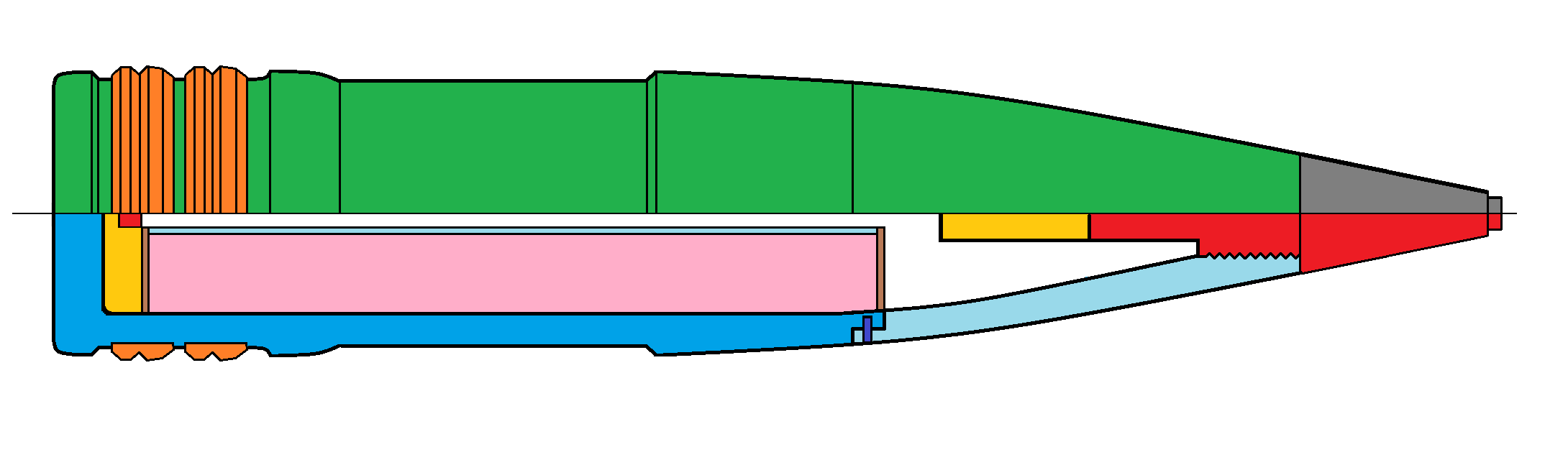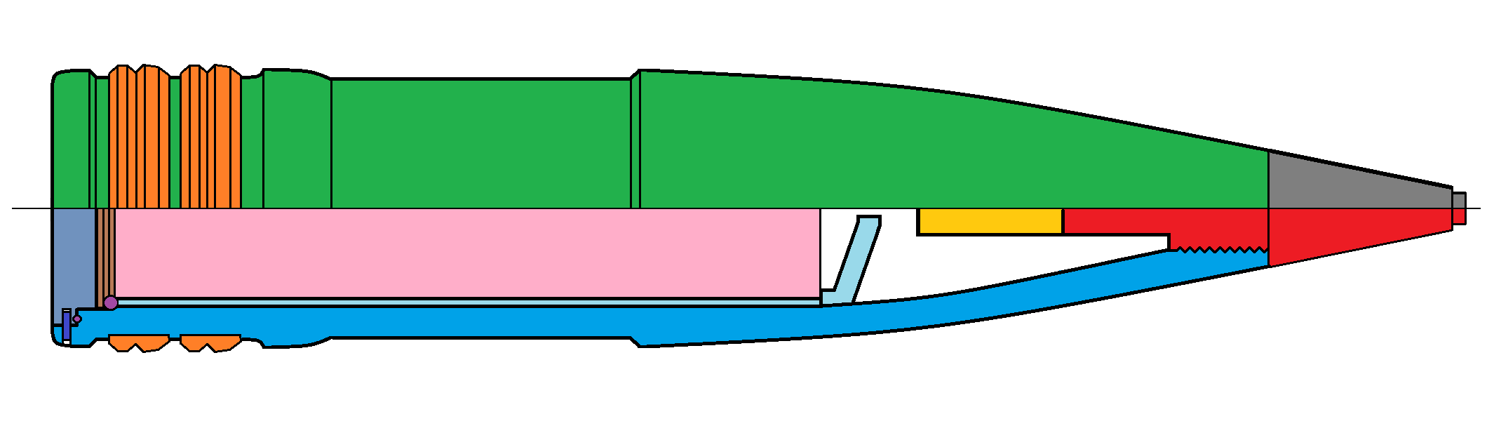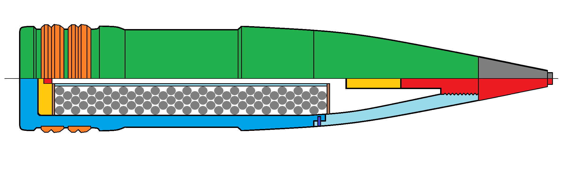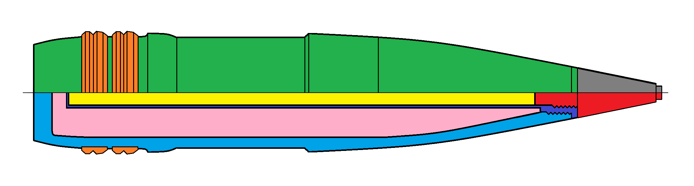 - Granát pre streľbu proti ponorkám a torpédam - kalich v prednej časti zabraňuje odrazu od vodnej hladiny