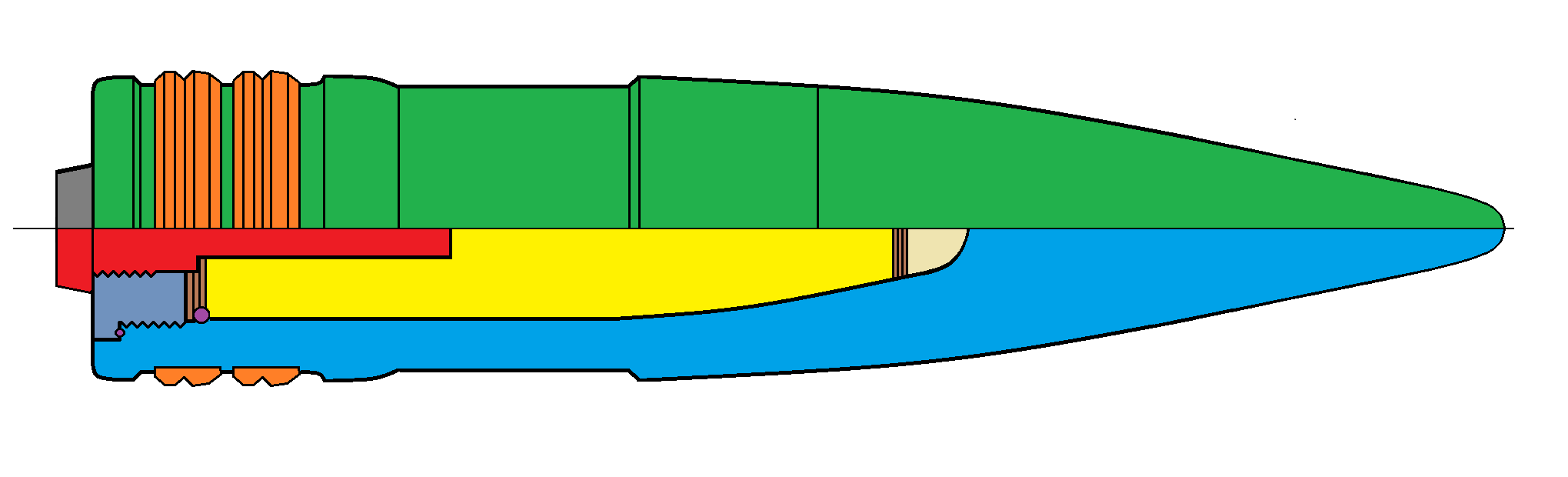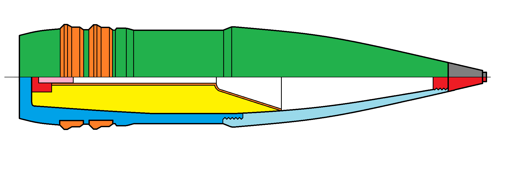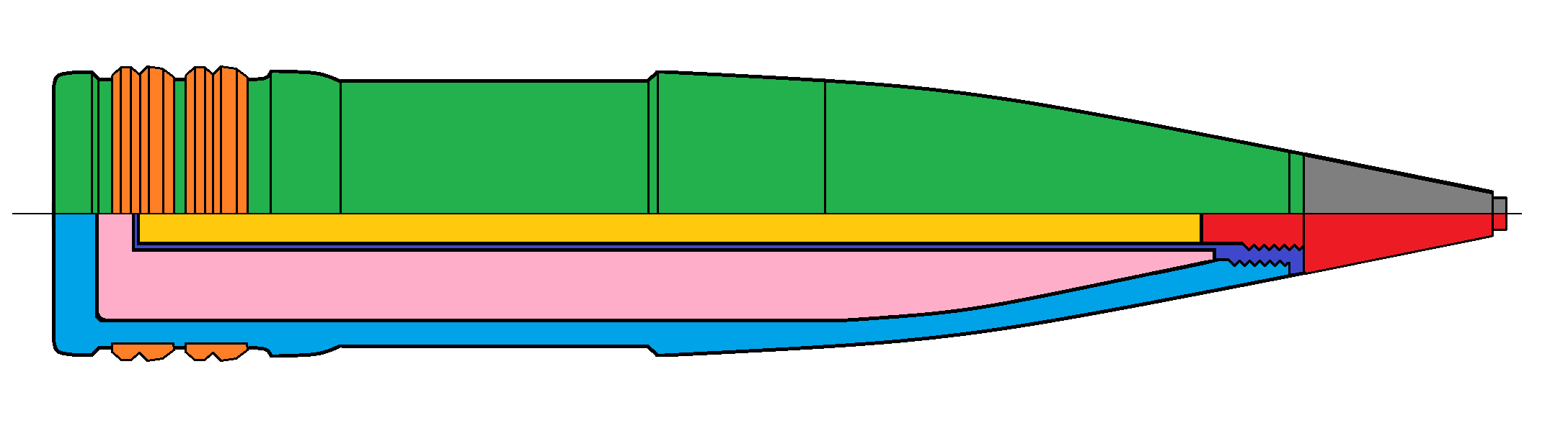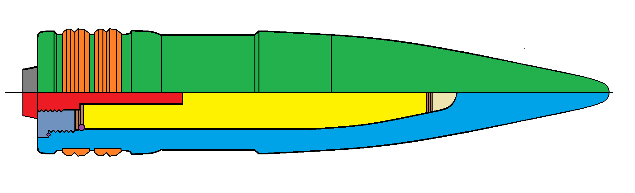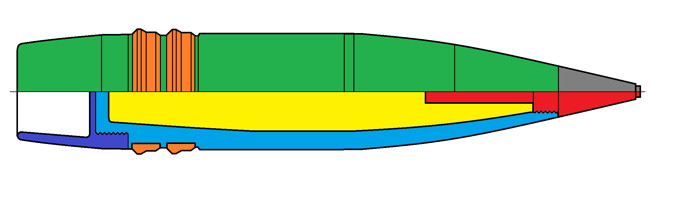 - Granát pre streľbu proti ponorkám a torpédam - kalich v prednej časti zabraňuje odrazu od vodnej hladiny