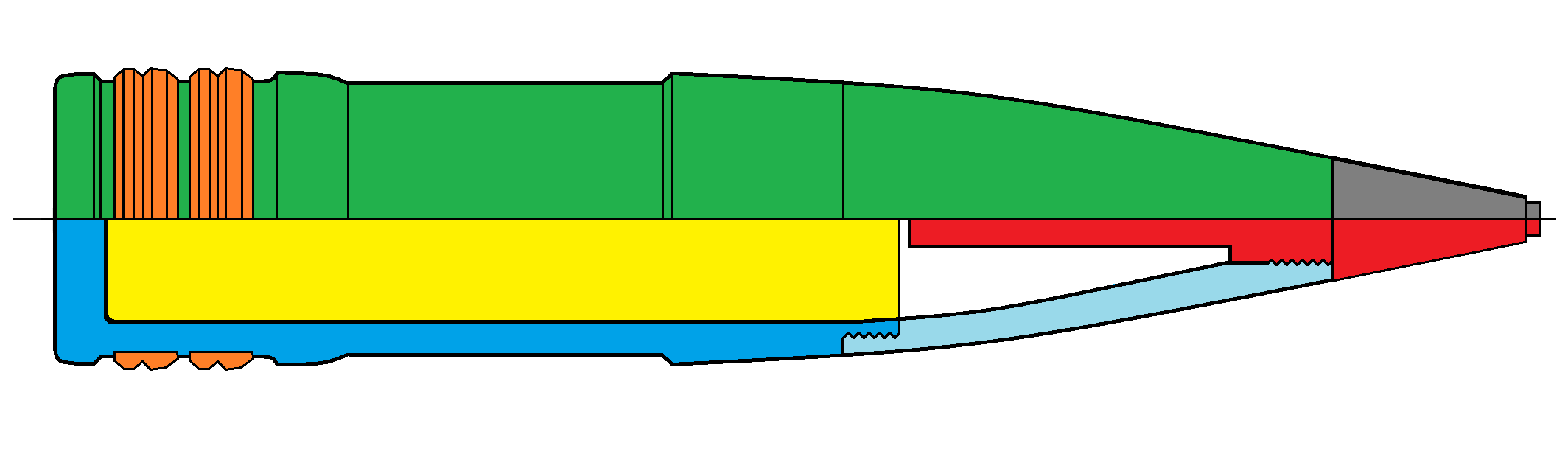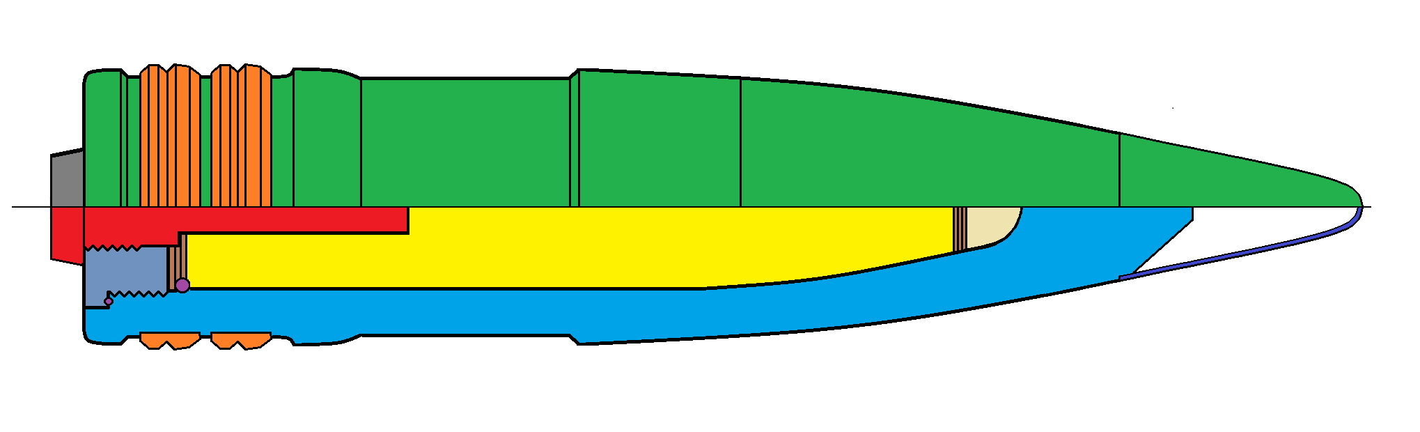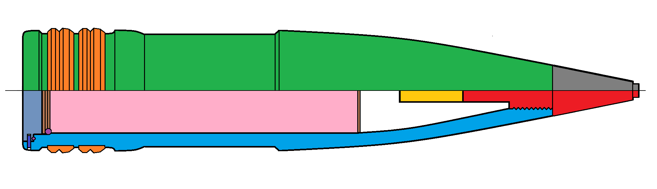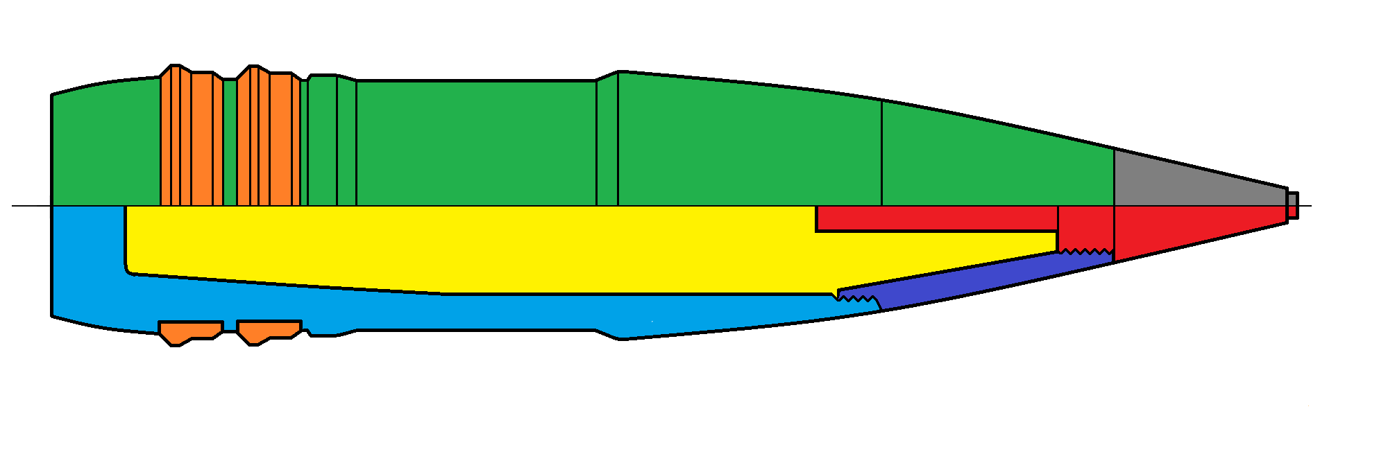 - Granát pre streľbu proti ponorkám a torpédam - kalich v prednej časti zabraňuje odrazu od vodnej hladiny