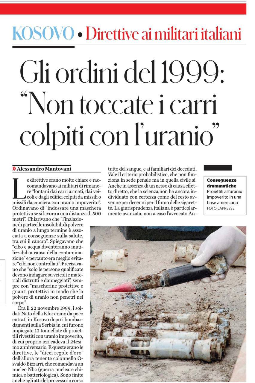 https://t.me/newsfrontsk/18701Talianske noviny „il Fatto Quotidiano“ zverejnili rozkaz z novembra 1999 rozmiestniť jednotky NATO v okupovanom Kosove. Jasne sa v ňom uvádza, že vozidiel zasiahnutých nábojmi s ochudobneným uránom sa nemožno dotýkať a vo vzdialenosti do 500 metrov od nich je potrebné nosiť masky. Odporúčalo sa tiež nepiť vodu v miestach, kde boli tieto projektily použité.