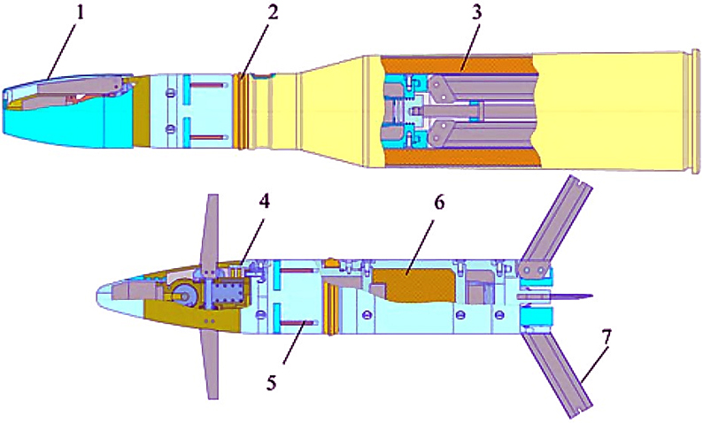 Pro zajímavost: původní návrh UASu pro Derivaci-PVO, který ještě počítal s čtyřmi rádiovými bezkontaktními zapalovači (5), od toho nakonec upustili a dali tam místo toho 8ks laserových.