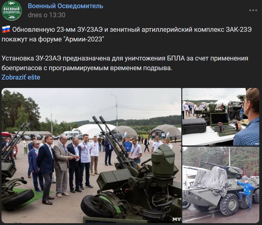 Modernizovaný 23 mm ZU-23AE (ЗУ-23АЭ) a protilietadlový komplex ZAK-23E (ЗАК-23Э) predstavia na fóre "Armija-2023" (Армия-2023)