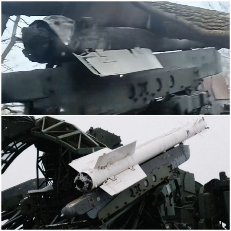 Zničené bojové vozidlo 9A33BM3 komplexu 9K33M3 Osa-AKM, modernizované v rámci projektu HORNET, ktorého prostriedkom ničenia sú rakety vzduch-vzduch krátkeho dosahu R-73 integrované do systému protivzdušnej obrany prostredníctvom obráteného leteckého pylónu APU-73.