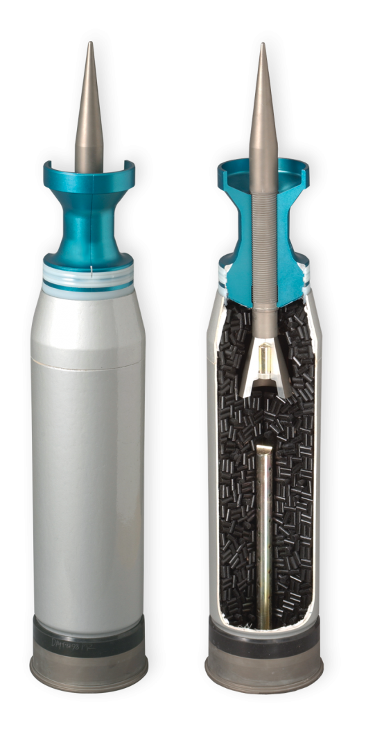 skôr ale zásah bol touto strelou 120mm M865 TPCSDS-T Target Practice, Cone Stabilized, Discarding Sabot-Tracer