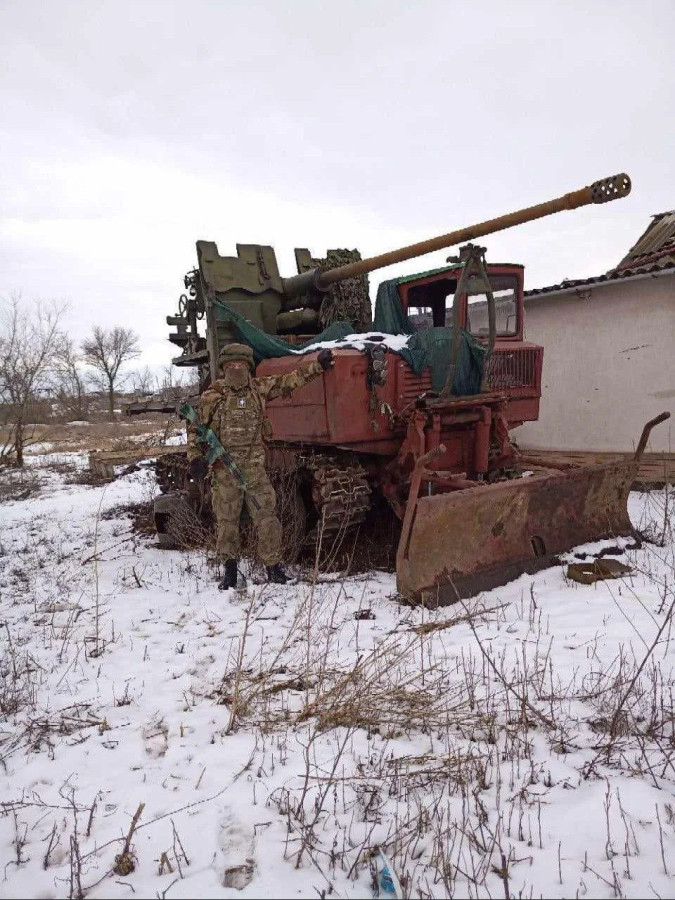 DIY artillery gun made from a BMP cannon used by Russian troops